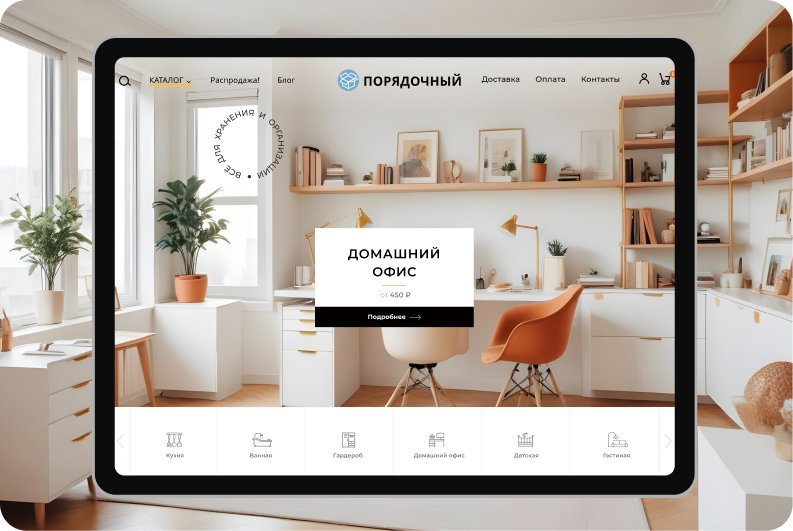 Создать дизайн премиального интернет-магазина решений для хранения и организации пространства, который отражал бы философию бренда: порядок как эстетика и комфорт.
