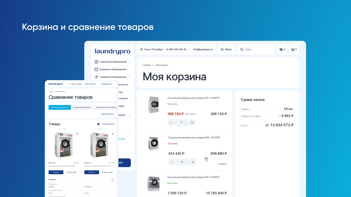 Переработали backend под новую вёрстку, что позволило улучшить производительность и безопасность системы. Реализовали множественную фильтрацию. В дизайне отобразили качество и ценности бизнеса, выделив компанию среди конкурентов.
