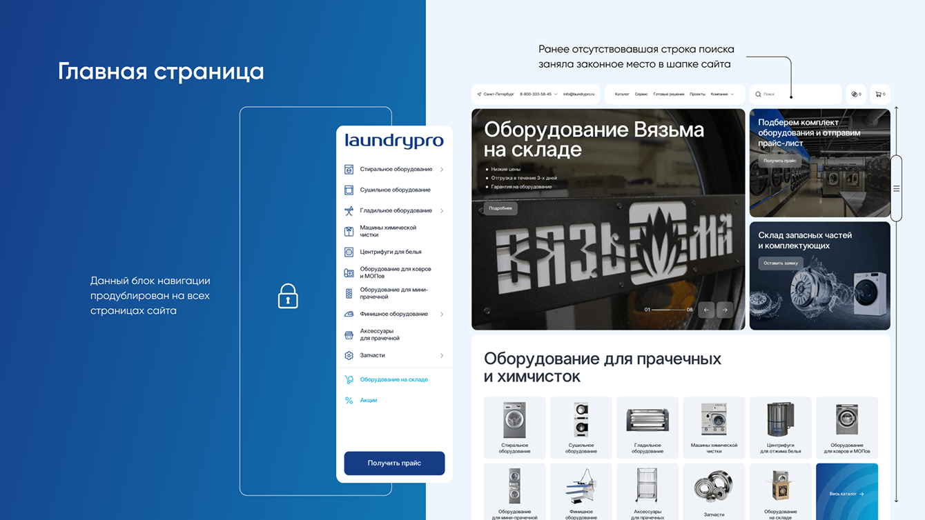1. Установили фиксированный каталог слева при скролле, который облегчает навигацию по категориям и сокращает время пользователя на поиск нужного раздела, что способствует улучшению UX (пользовательского опыта) и повышению удовлетворенности. Это ключевой элемент дизайна, под который подстраивается весь контент сайта.