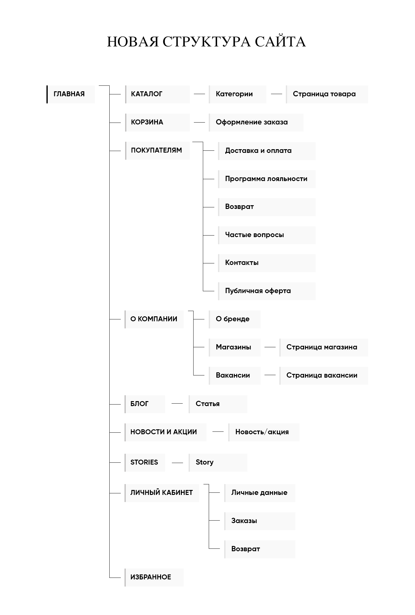 На начальном этапе мы разработали новую структуру сайта.