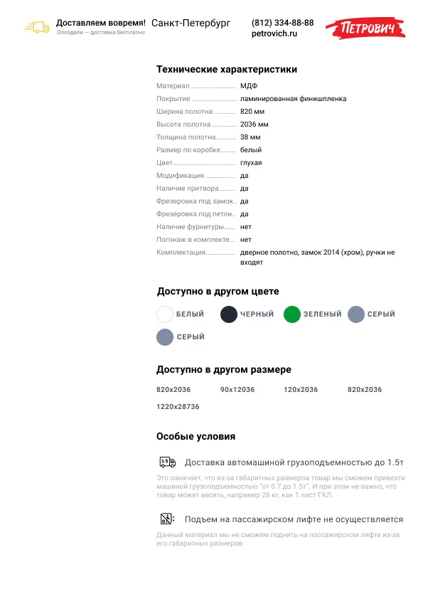 Акции, услуги, особые условия доставки, разбросанные по всей карточке, мы собрали в один блок (требование «Блок для значков документов и сертификатов в карточке товара»).