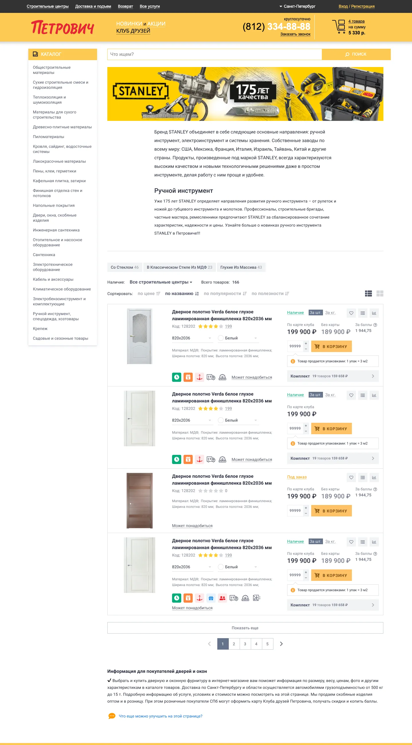 - Учесть пожелания к этим страницам от разных подразделений «Петровича».