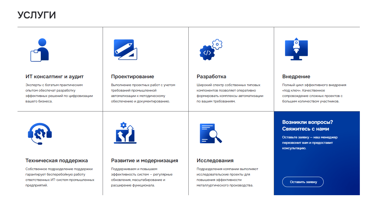 Создать современный, функциональный и визуально привлекательный сайт, который отражает инновационный имидж компании, обеспечивает удобство использования на любых устройствах и способствует росту вовлечённости и конверсии пользователей.