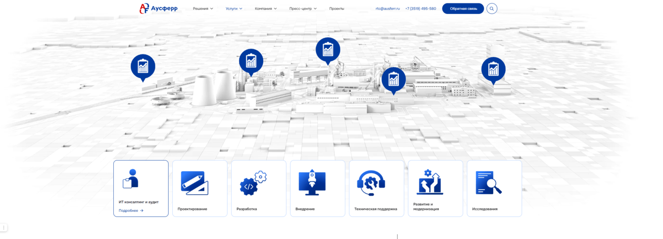 После редизайна сайт стал современным, удобным и эффективным инструментом для клиентов и партнёров АО «Аусферр». Мобильный трафик увеличился на 50%, а количество заявок — на 35%. Пользователи отмечают удобство навигации, улучшенное восприятие бренда и высокое качество визуального оформления. Реализация проекта доказала свою эффективность для укрепления цифрового присутствия и усиления позиций компании на рынке.