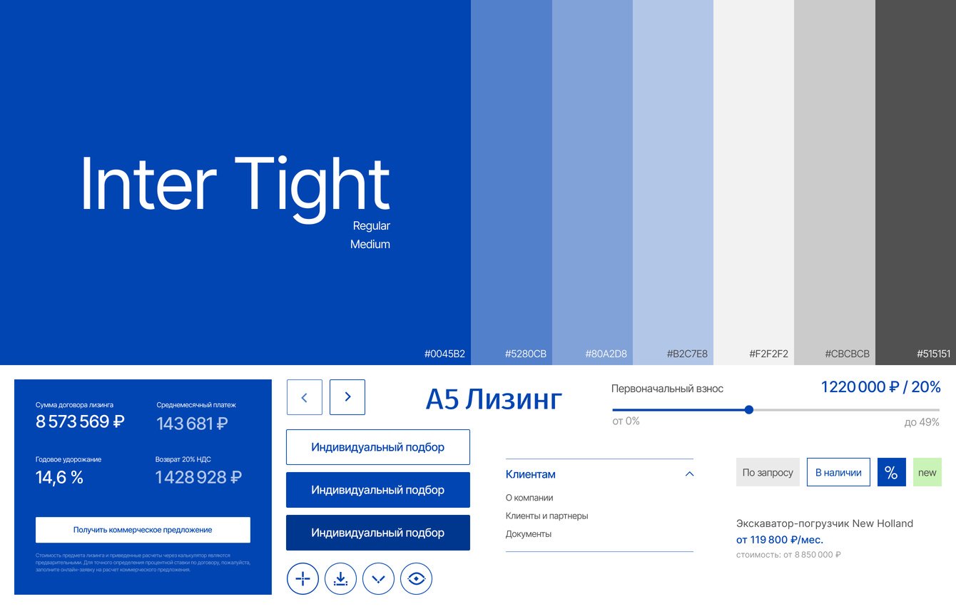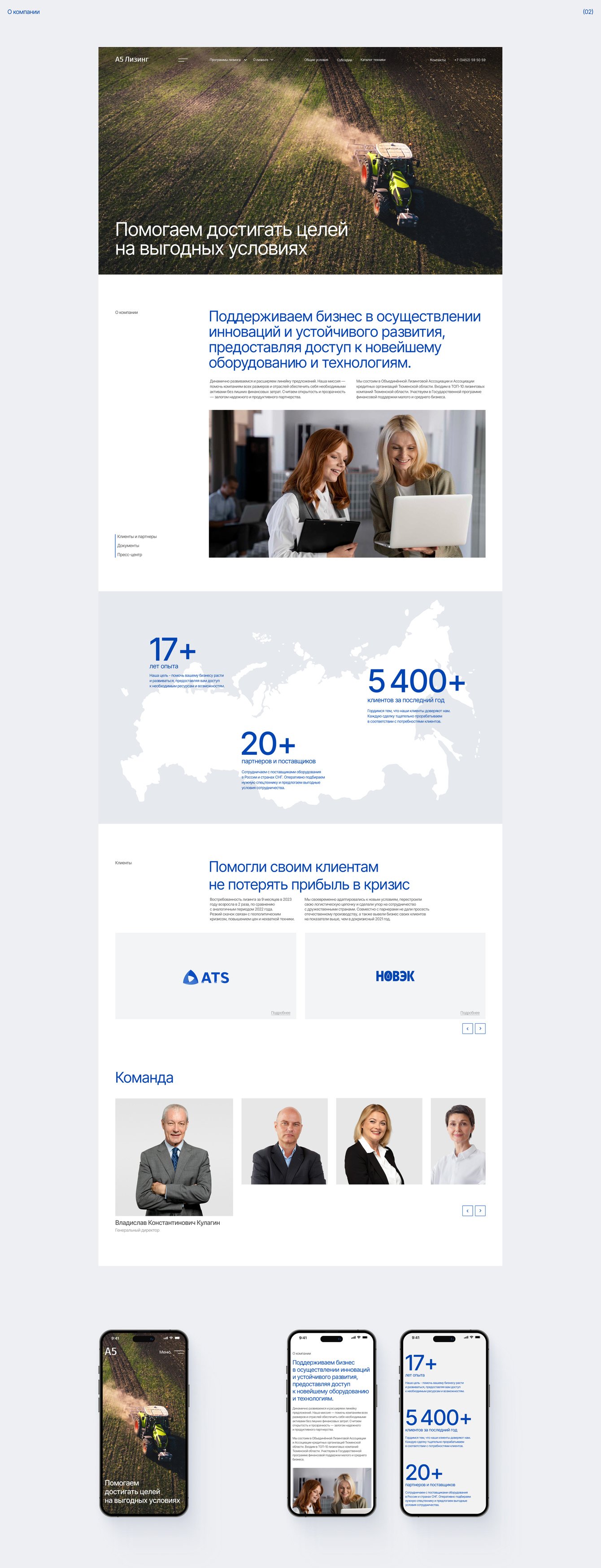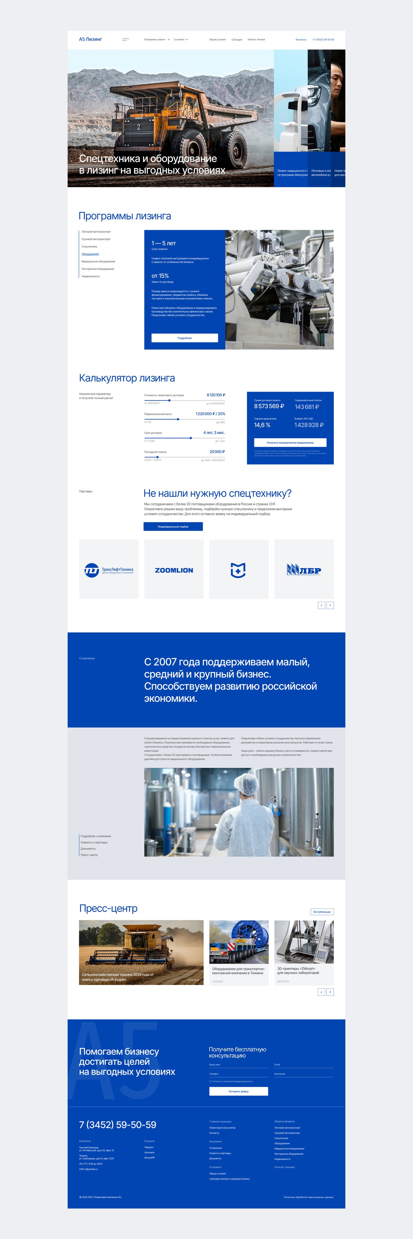 А5 лизинг получил современный и удобный сайт, который выделяет его среди стандартных сайтов конкурентов. Дизайн-система обеспечила единый стиль компании как в digital, так и на физических носителях. Нам удалось снизить стоимость техники на 5%, за счет проведения фото и видео сьемки локомотивных товаров у поставщиков.