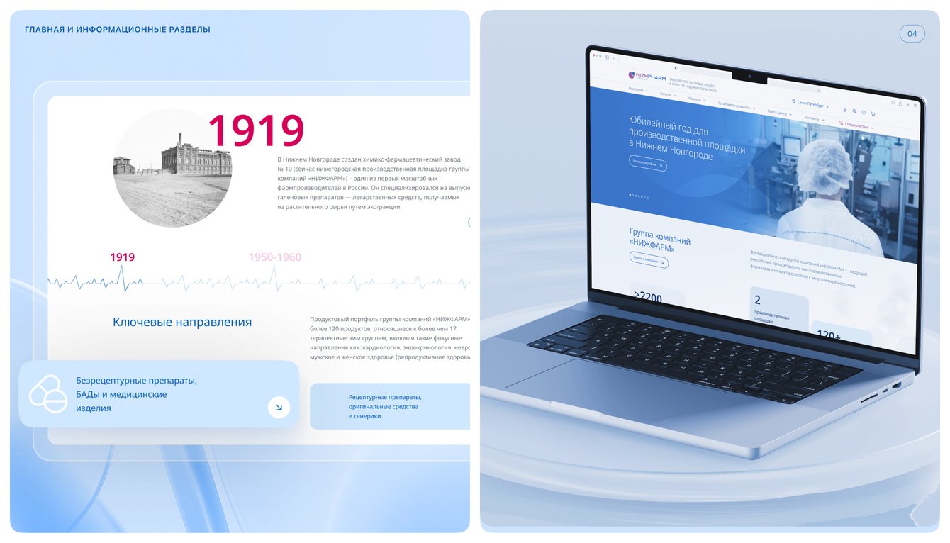 Группа компаний «НИЖФАРМ» - это один из ведущих российских производителей высококачественных фармацевтических препаратов со 105-летней историей. Сегодня она выпускает широкий ассортимент продуктов и работает более чем в 17 терапевтических группах. Компания активно развивает цифровые сервисы и обновляет онлайн-присутствие, чтобы сделать информацию о продуктах и сервисах удобнее и доступнее для пользователей.