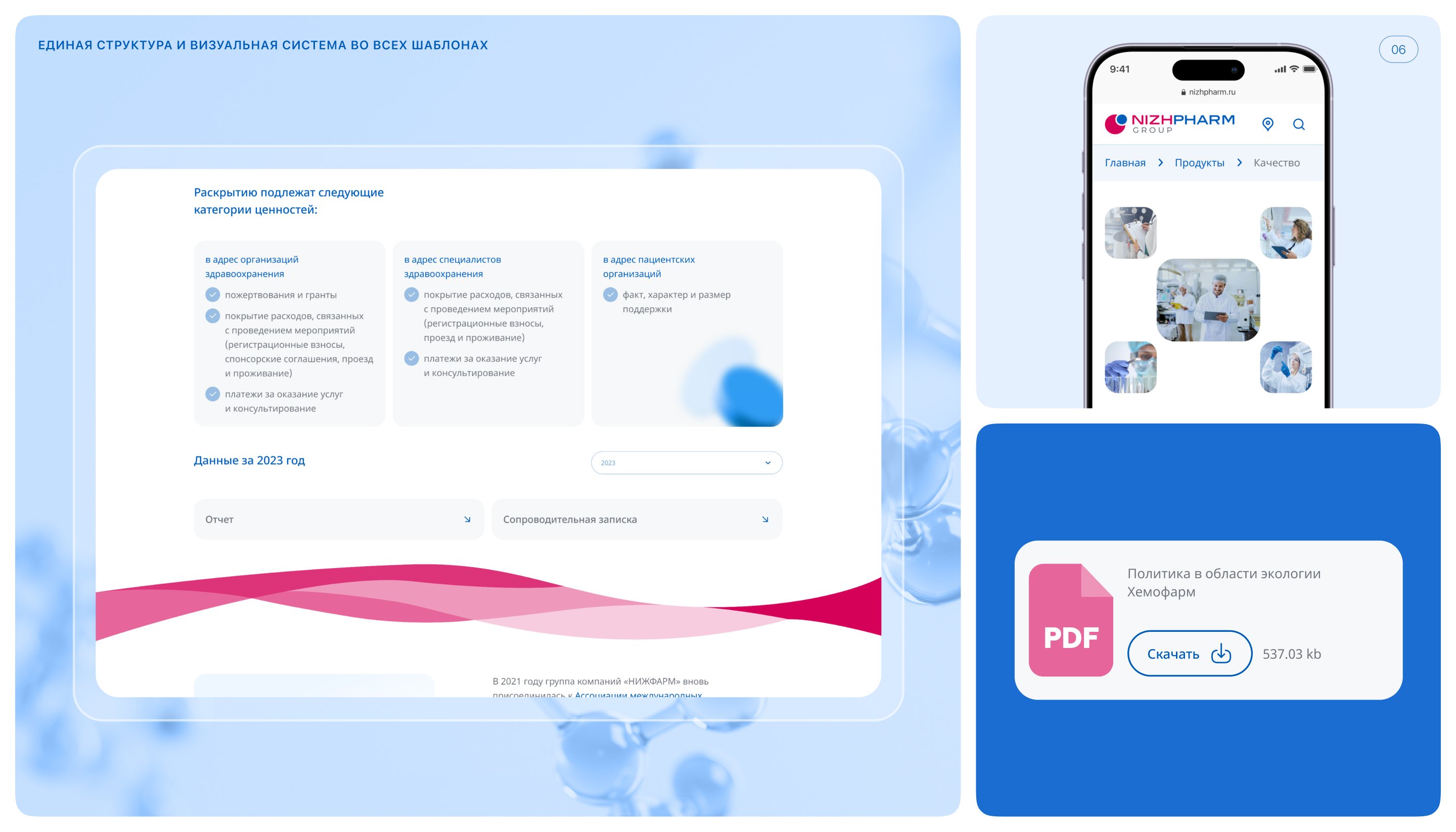 В последние годы бренд перешел к самостоятельному развитию и получил возможность формировать собственную цифровую экосистему. После отделения от зарубежного партнера группе компаний «НИЖФАРМ» было важно обновить основной сайт: привести дизайн в соответствие с новым этапом развития, избавиться от ограничений прежних визуальных гайдлайнов и создать полноценный современный пользовательский интерфейс.