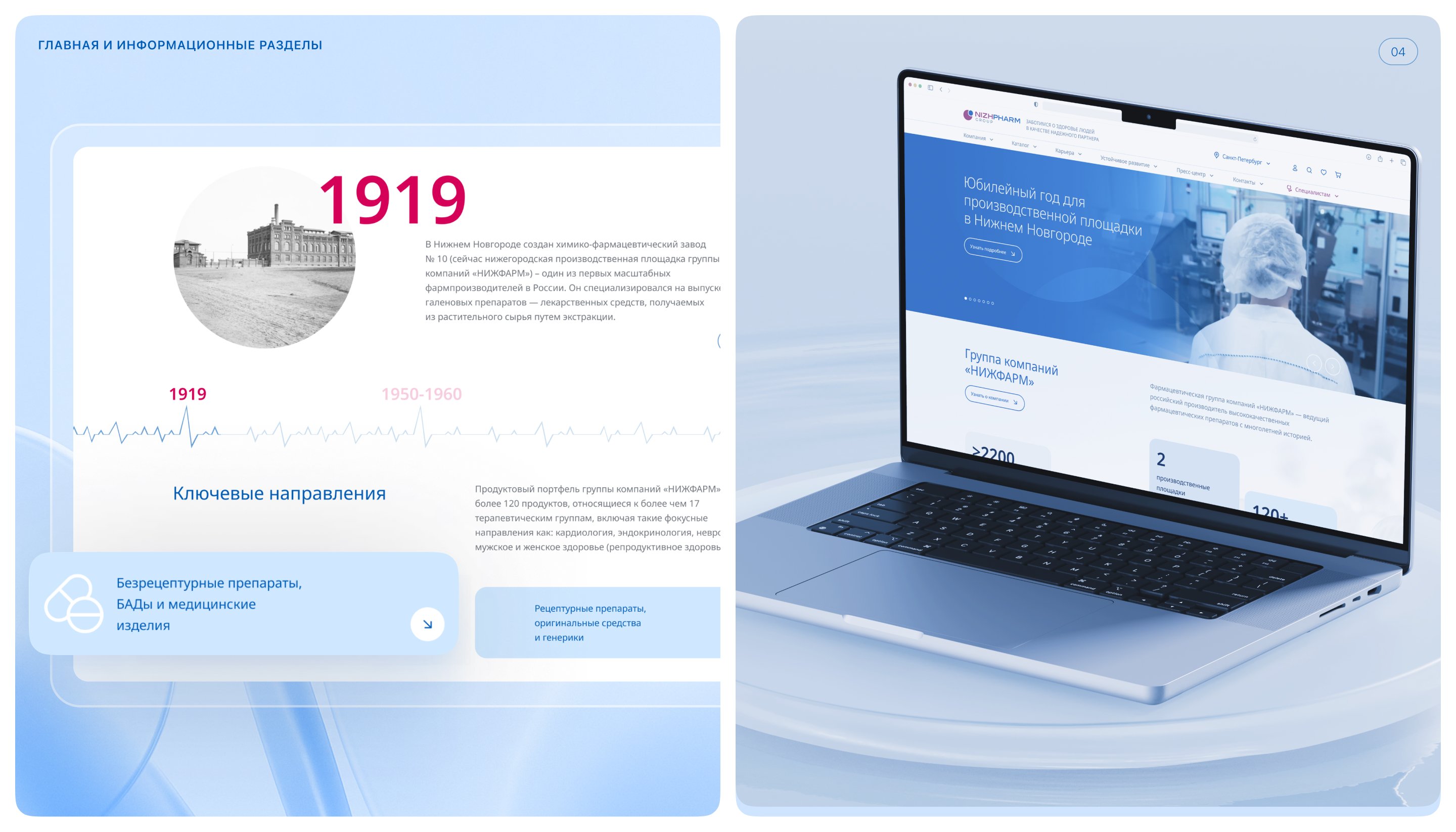 Группа компаний «НИЖФАРМ» - это один из ведущих российских производителей высококачественных фармацевтических препаратов со 105-летней историей. Сегодня она выпускает широкий ассортимент продуктов и работает более чем в 17 терапевтических группах. Компания активно развивает цифровые сервисы и обновляет онлайн-присутствие, чтобы сделать информацию о продуктах и сервисах удобнее и доступнее для пользователей.