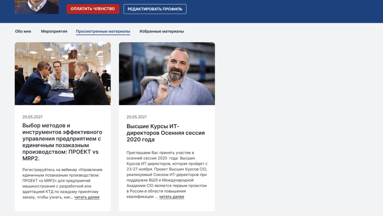 Обновленный сайт имеет личный кабинет каждого члена клуба. В нем пользователь может посмотреть список мероприятий, записаться на него онлайн и добавить себе в календарь. Также доступна функция внесения изменений реквизитов плательщика. Информация об оплате членства отслеживается автоматически.