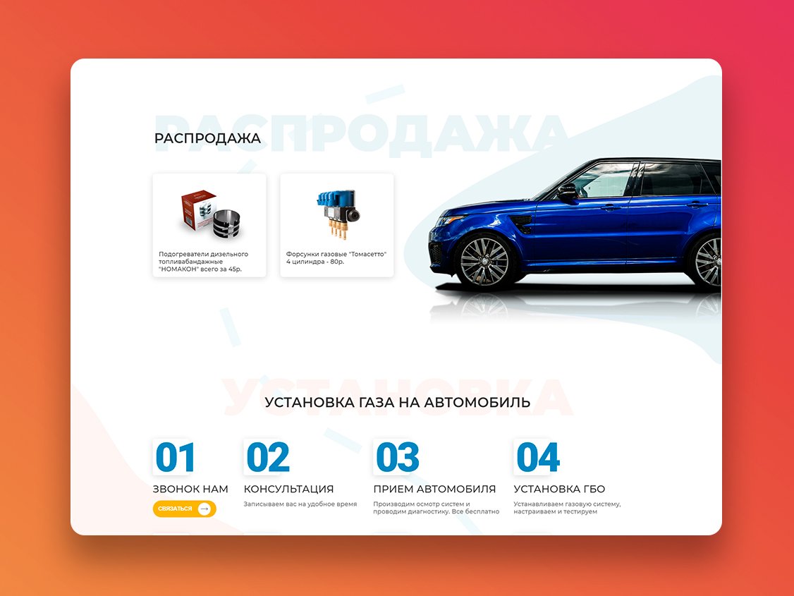 От владельца компании ГазКар поступил запрос на разработку Лендинг сайта по продаже услуги установки газового оборудования на автомобили. Требования к дизайну были простыми: брутальный сайт, с цепляющими офферами.