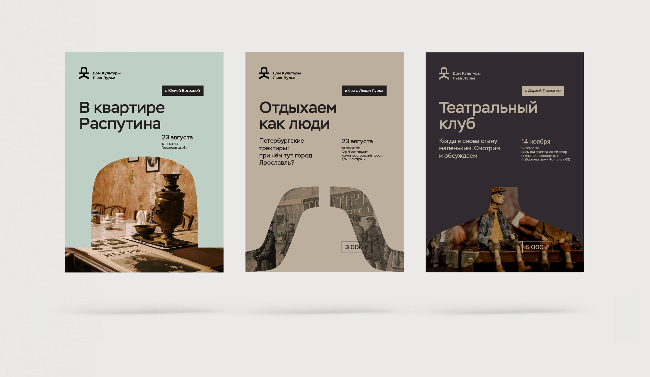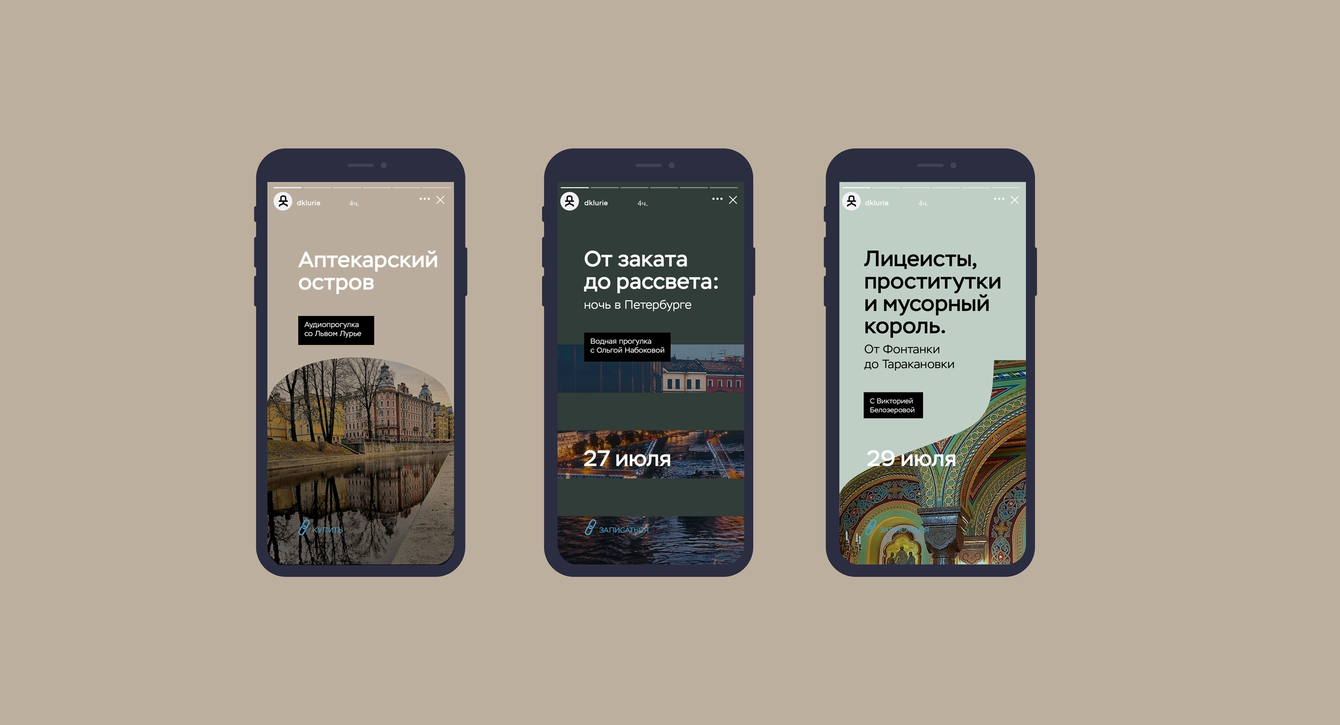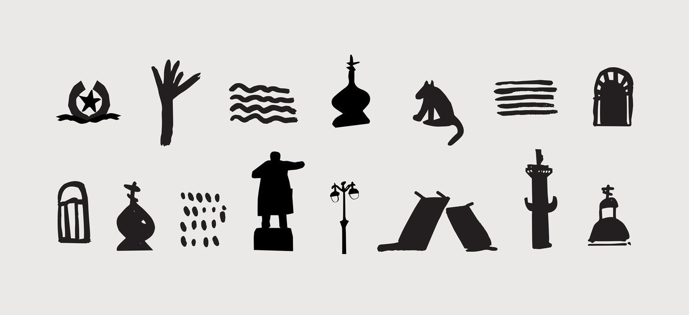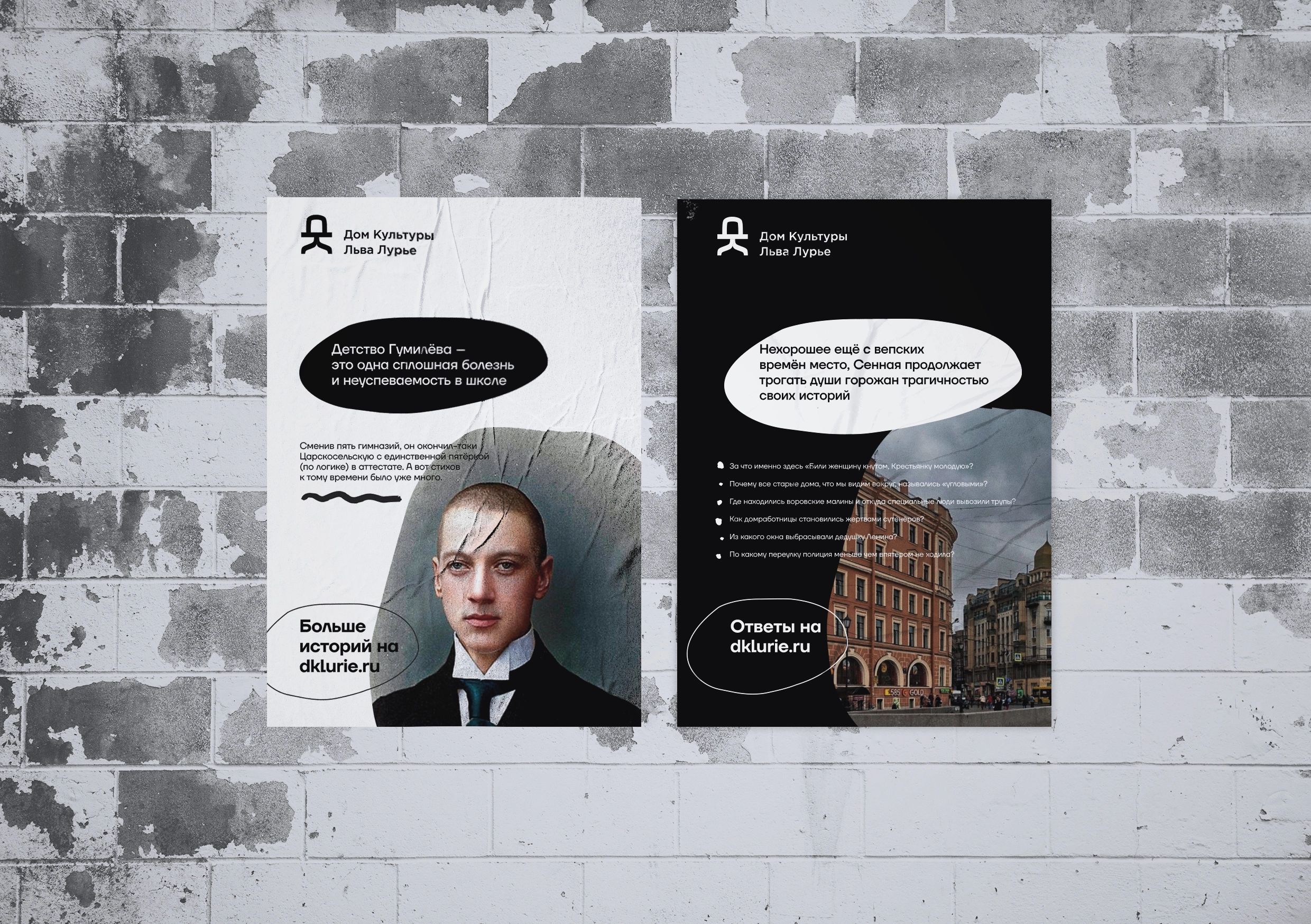 Так же клиенту была предложена хулиганская концепция, которая нам очень нравится и мы не смогли не выложить. Она вдохновлена иллюстрациями Александра Флоренского и живописью Владимира Шинкарева. Смешные питерские персонажи и символы, неправильные формы, плашки под текстом — как будто вылили банку чернил.