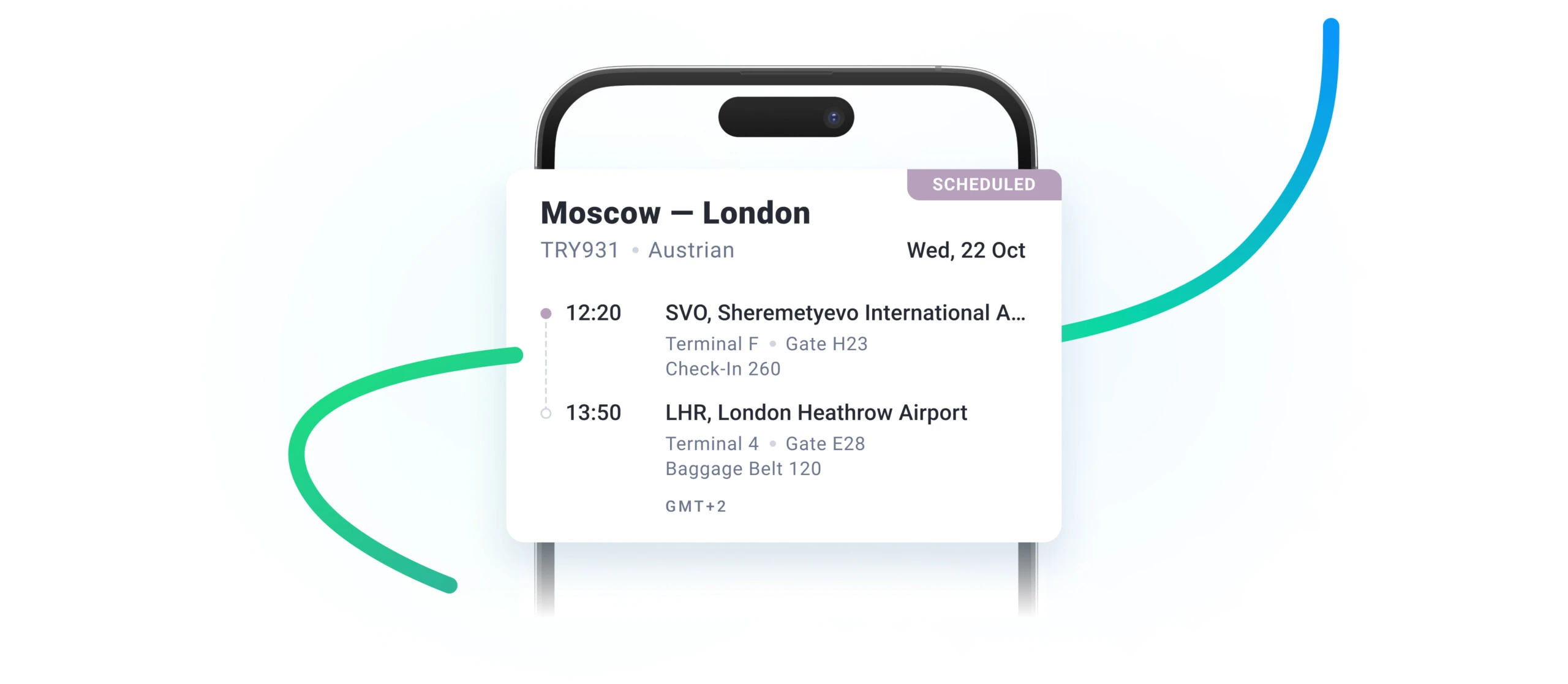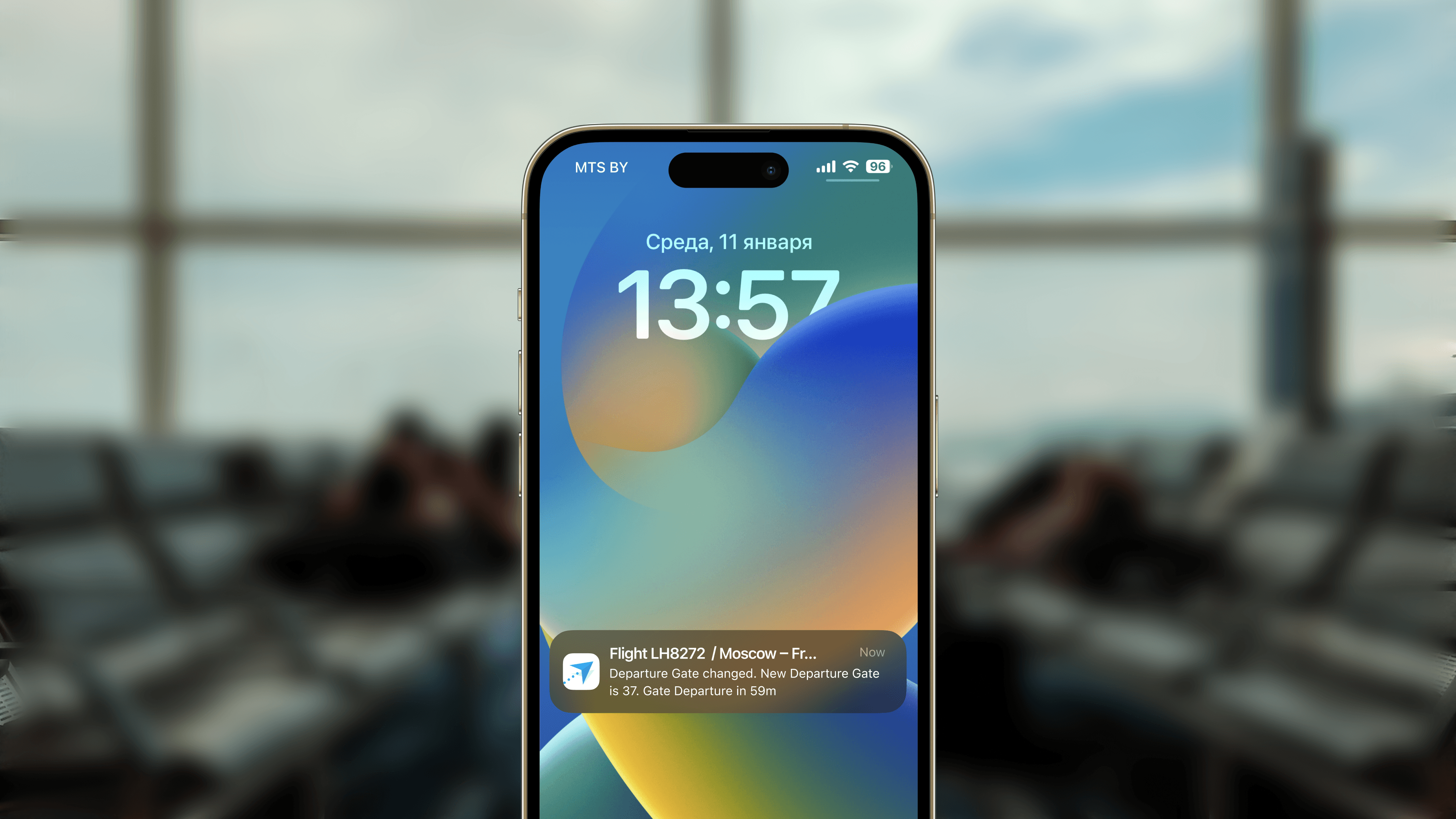 Задерживается вылет или изменился номер выхода на посадку — приложение уведомит об этом пушами.