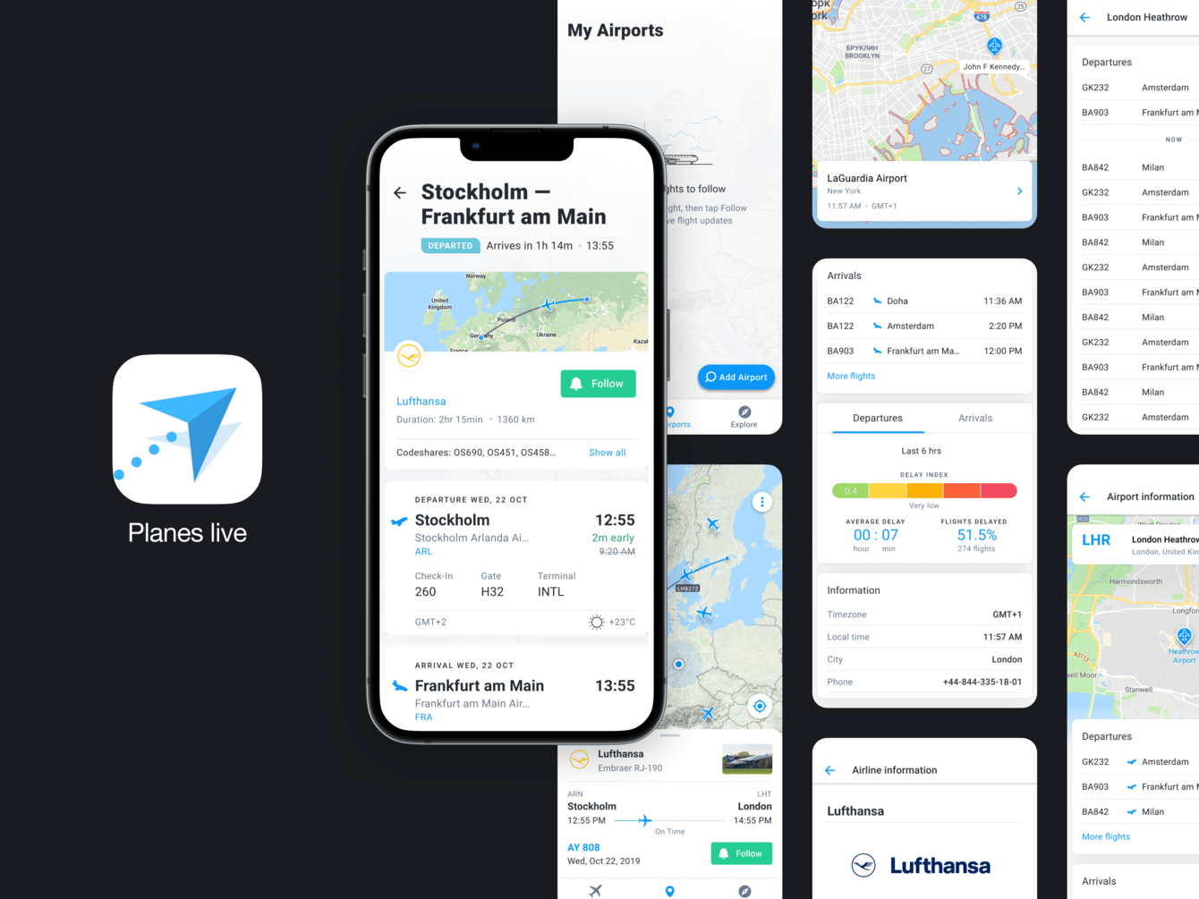 Planes Live — приложение по трекингу самолётов. Миллионы пользователей планируют поездки с Planes Live и получают актуальную информацию о рейсах, аэропортах, погоде и задержках вылета по всему миру в режиме онлайн.