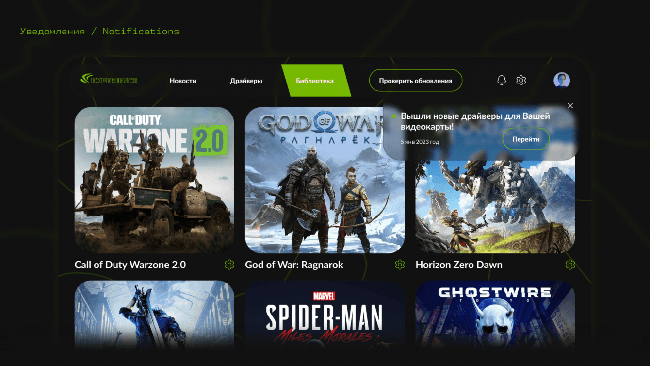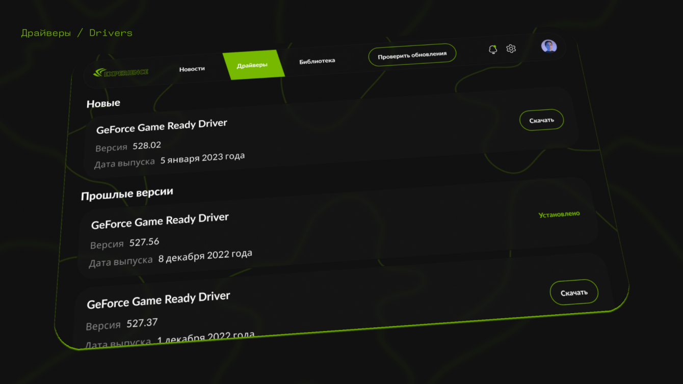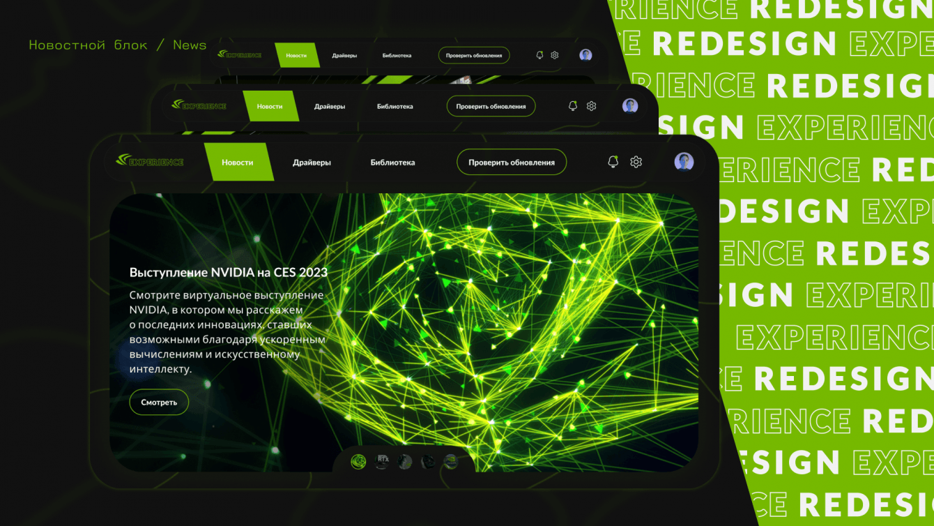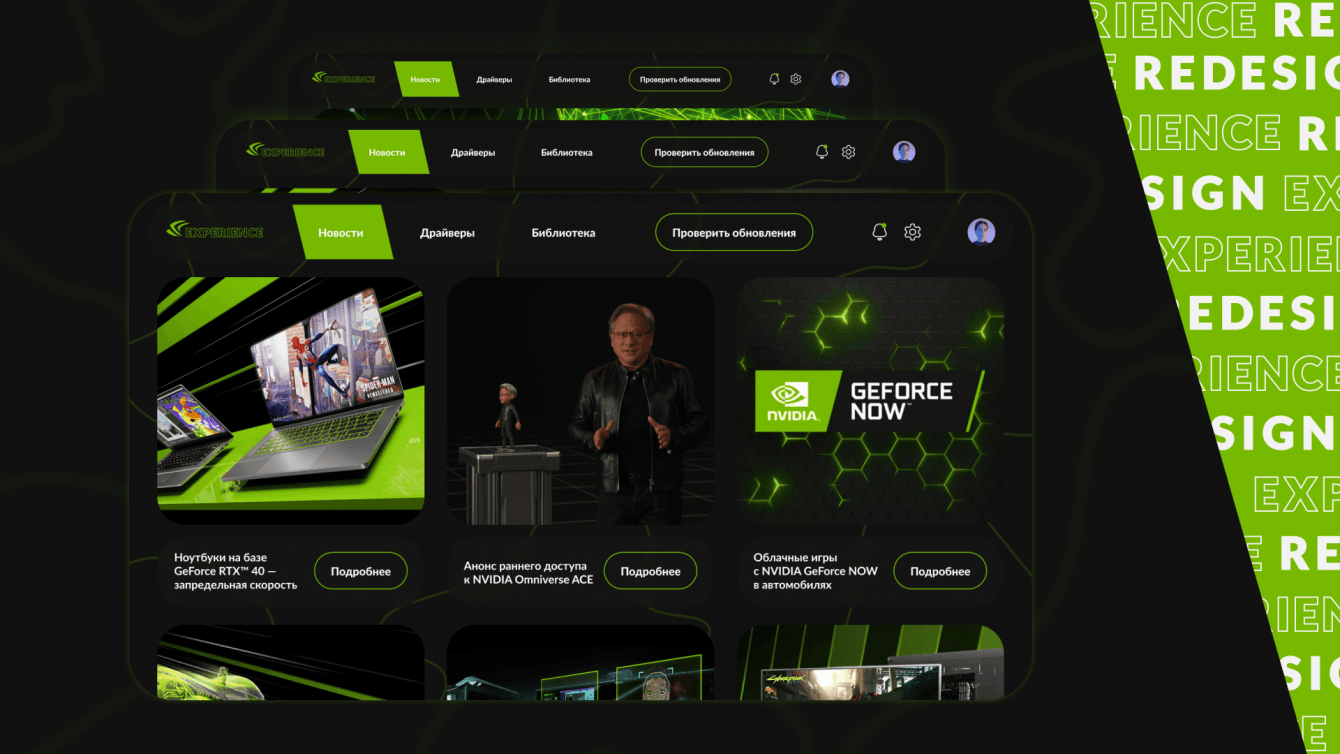 Сделать редизайн визуально устаревшего приложения для ПК для геймеров — GeForce Experience.