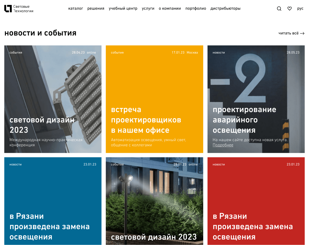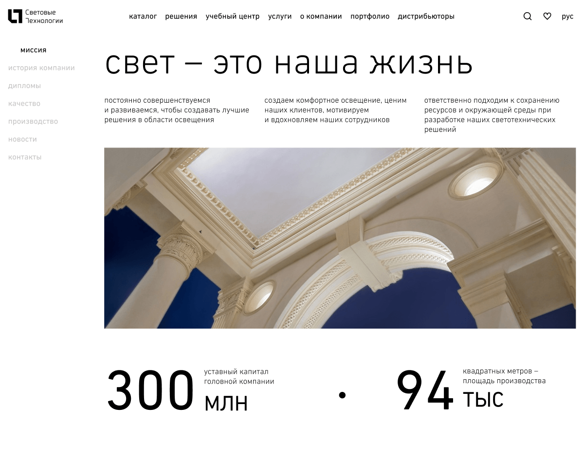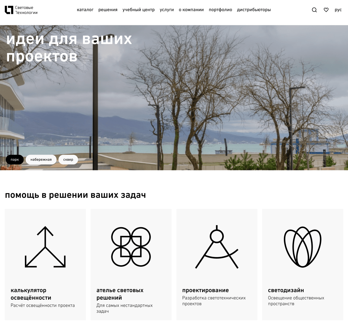 Световые Технологии обратились к нам за редизайном онлайн-каталога и обновлению визуальной концепции компании. Девиз Световых Технологий – уверенность в решении. Это транслирует и обновленное цифровое пространство компании – комфортные решения, удобство использования, ответственность и профессионализм в каждом взаимодействии с брендом.