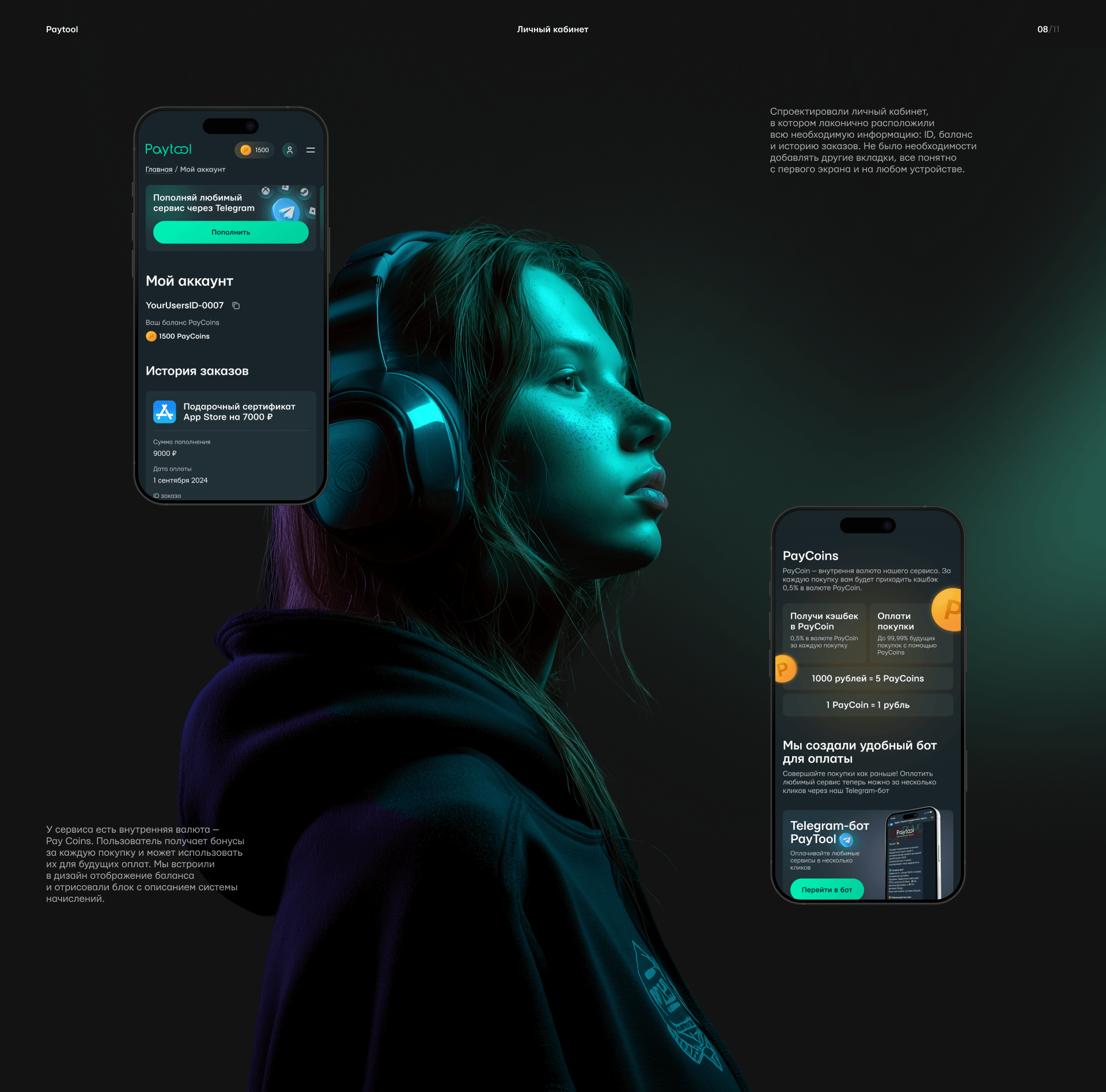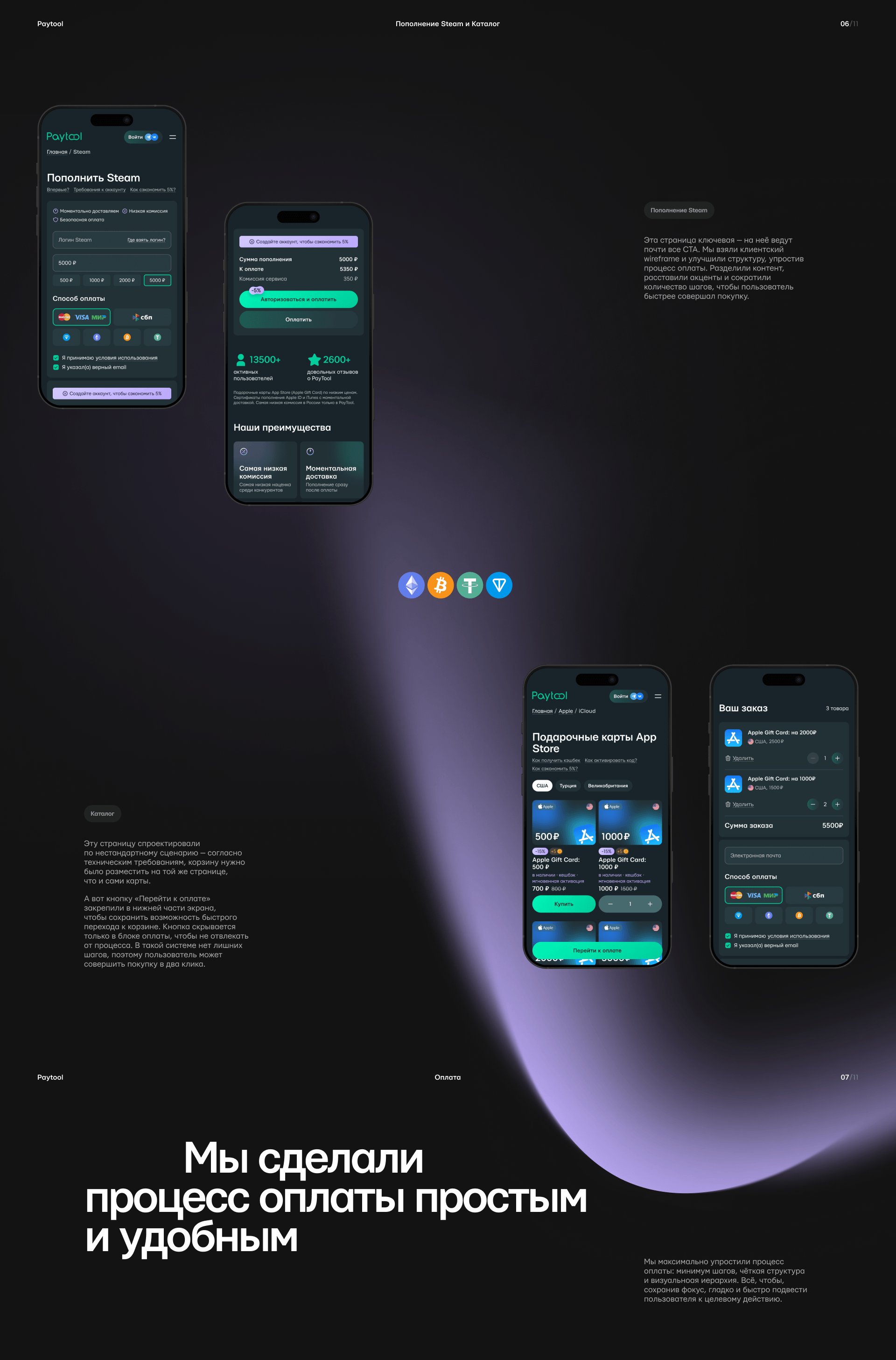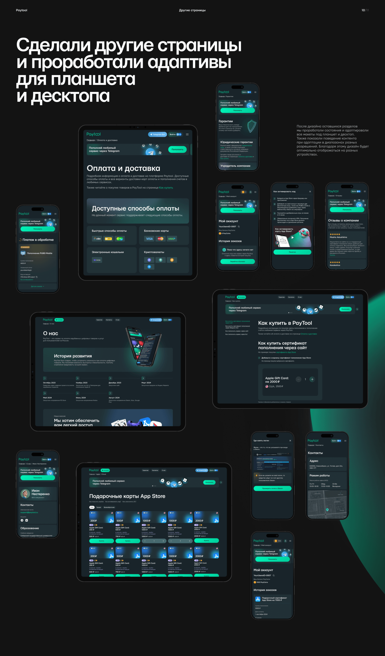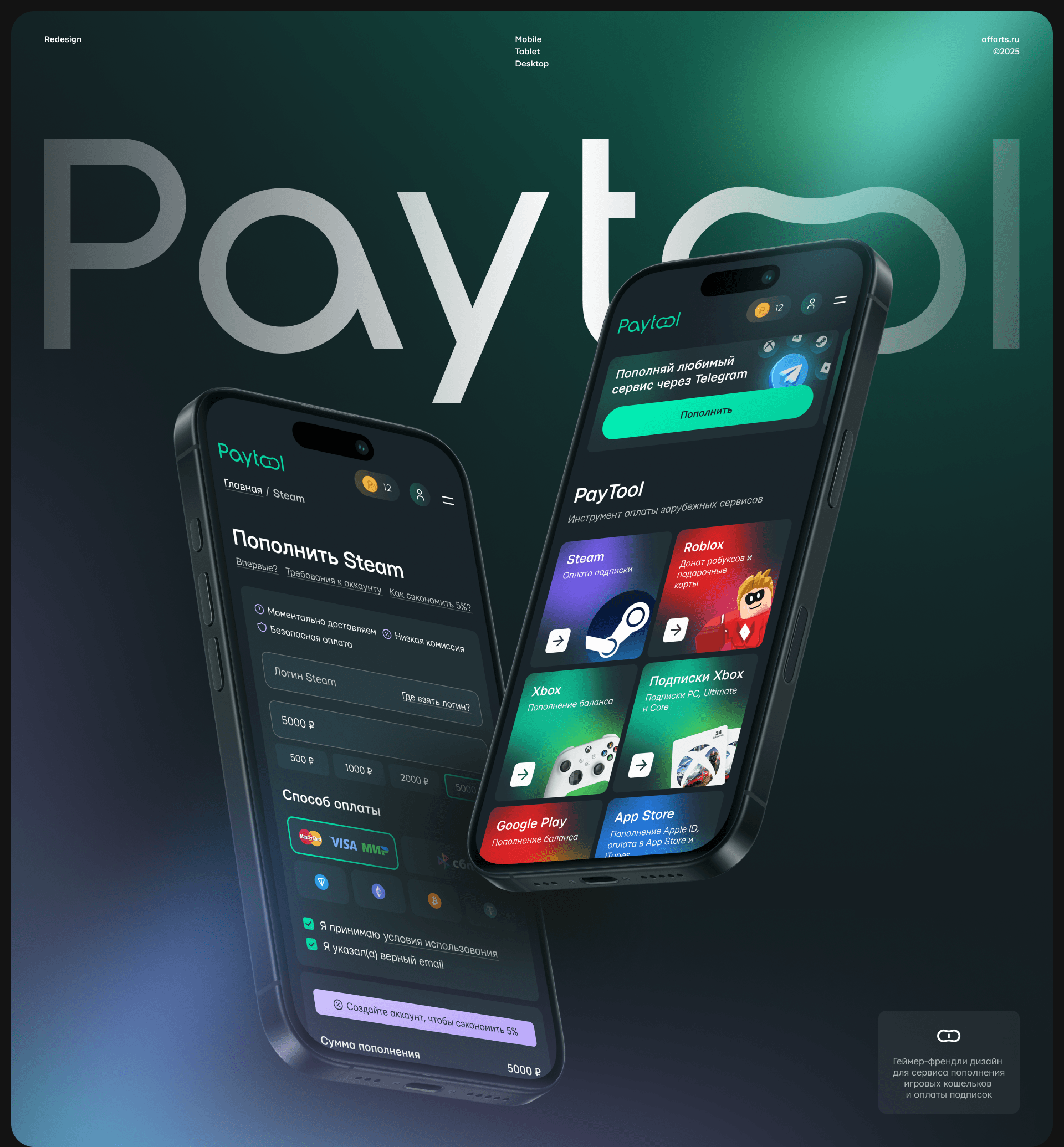 Paytool начинался как понятный и полезный MVP в Telegram, но в какой-то момент стало ясно, что этого уже мало. И здесь как раз хорошо видно главное: задача была не просто «перерисовать сайт», а превратить утилитарный сценарий в полноценный сервис, которому хочется доверять. Для такой темы это особенно важно, потому что всё упирается в ощущение надёжности, скорости и понятности.
