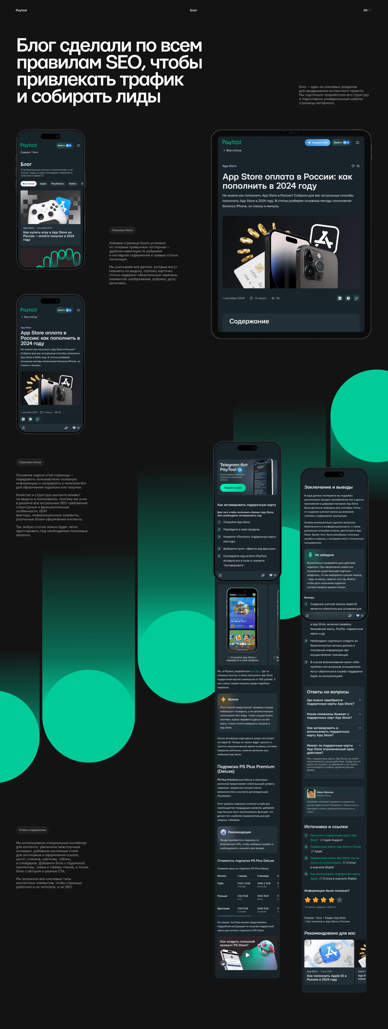 – Спроектировали 17 уникальных шаблонов — от главной и страниц пополнения до блога с полным набором контентных блоков.