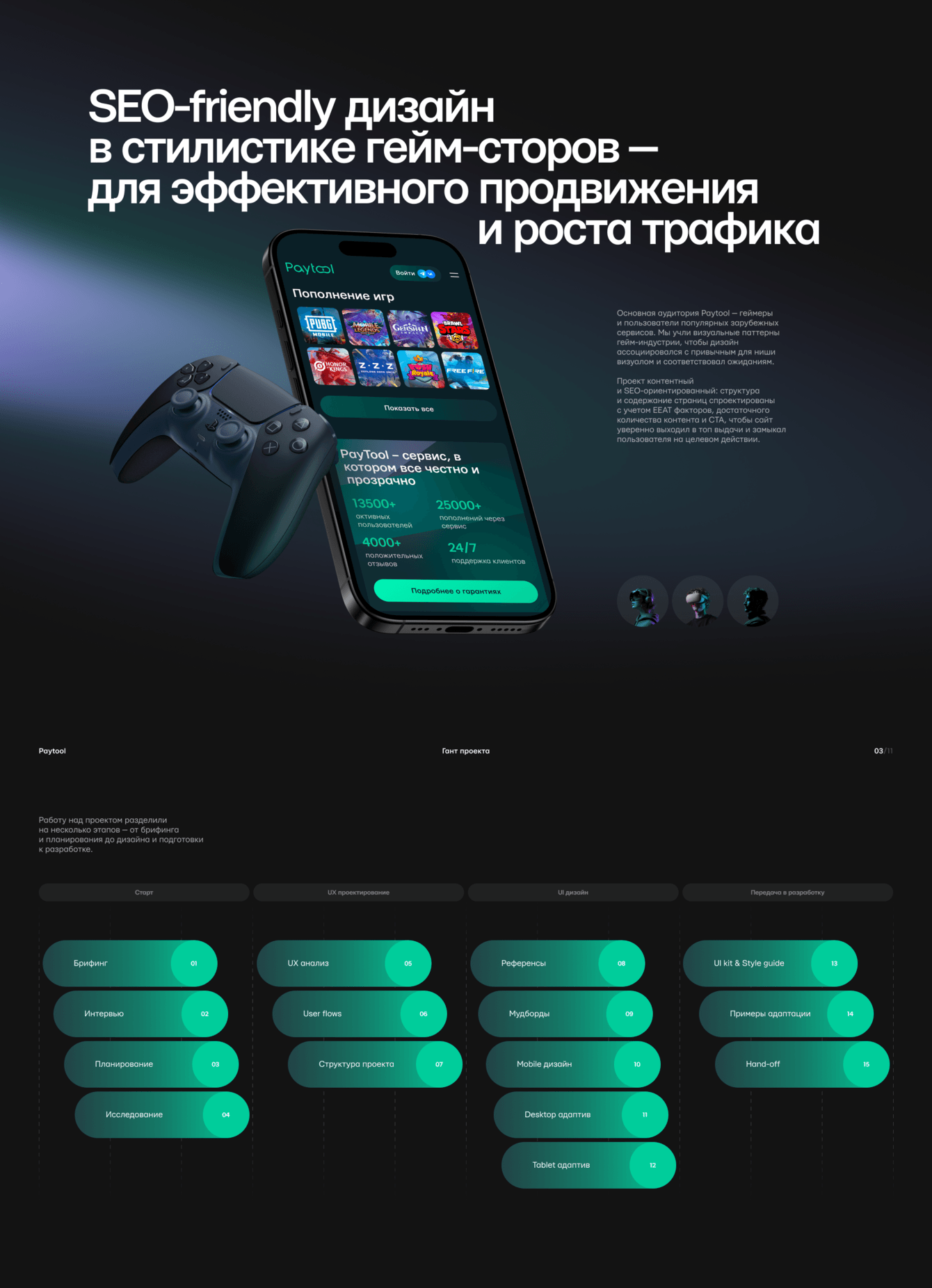 В итоге получился проект, в котором чувствуется здравый баланс. С одной стороны — яркая, понятная стилистика, близкая игровой аудитории. С другой — нормальная продуктовая база: личный кабинет, продуманная оплата, контентная архитектура, дизайн-система для роста.