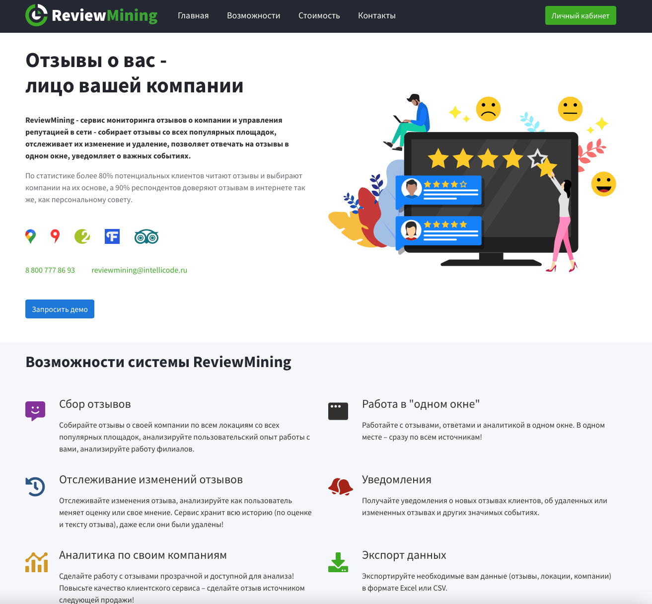 Разработать редизайн посадочной страницы для сервиса ReviewMining.