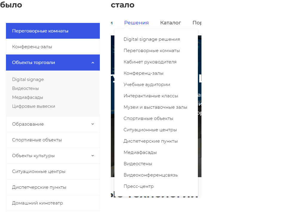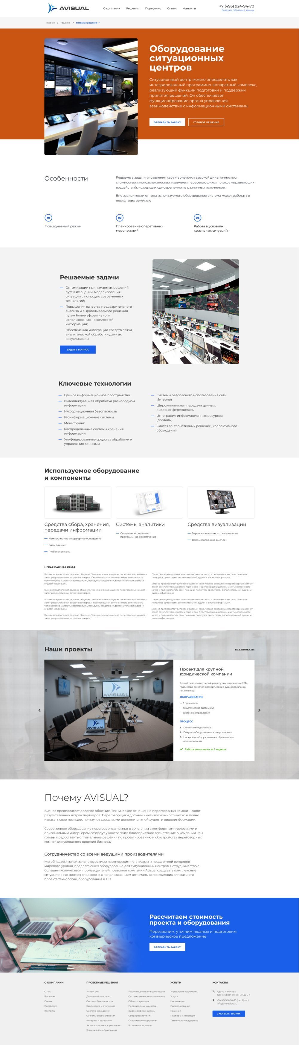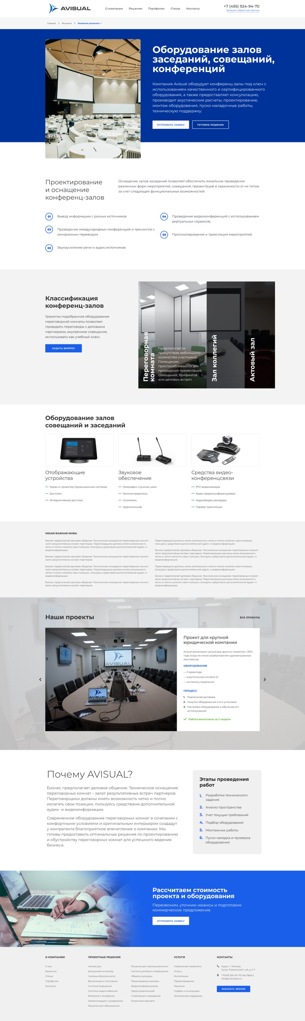 Страницы раздела, презентующие комплексные мультимедийные решения для разных типов помещений, плохо конвертировали посетителей сайта в клиентов, не приносил заказы, хотя трафика было достаточно много. Задача была в проработке как содержимого страниц, так и юзабилити.
