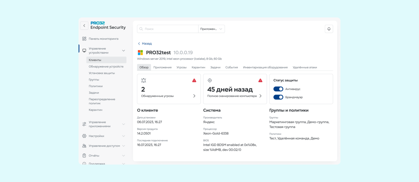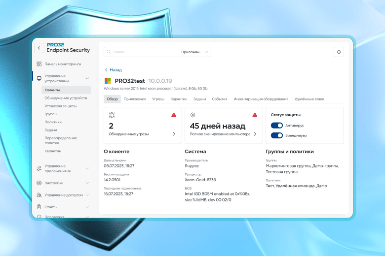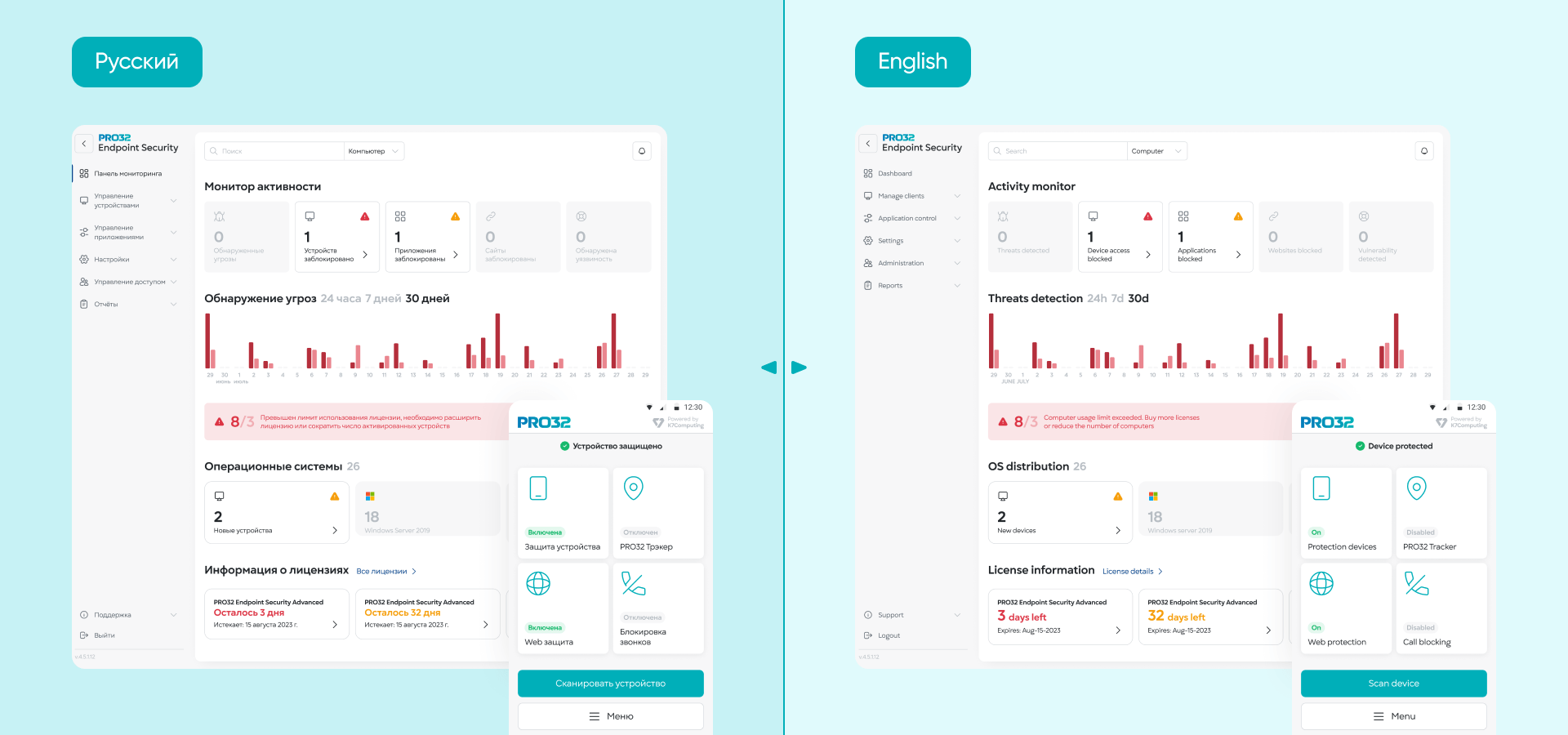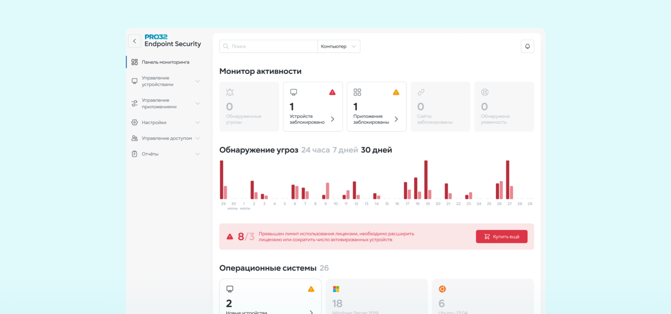 Закрыли одну из ключевых болей клиентов PRO32 — сделали удобный и современный дизайн антивирусного ПО.