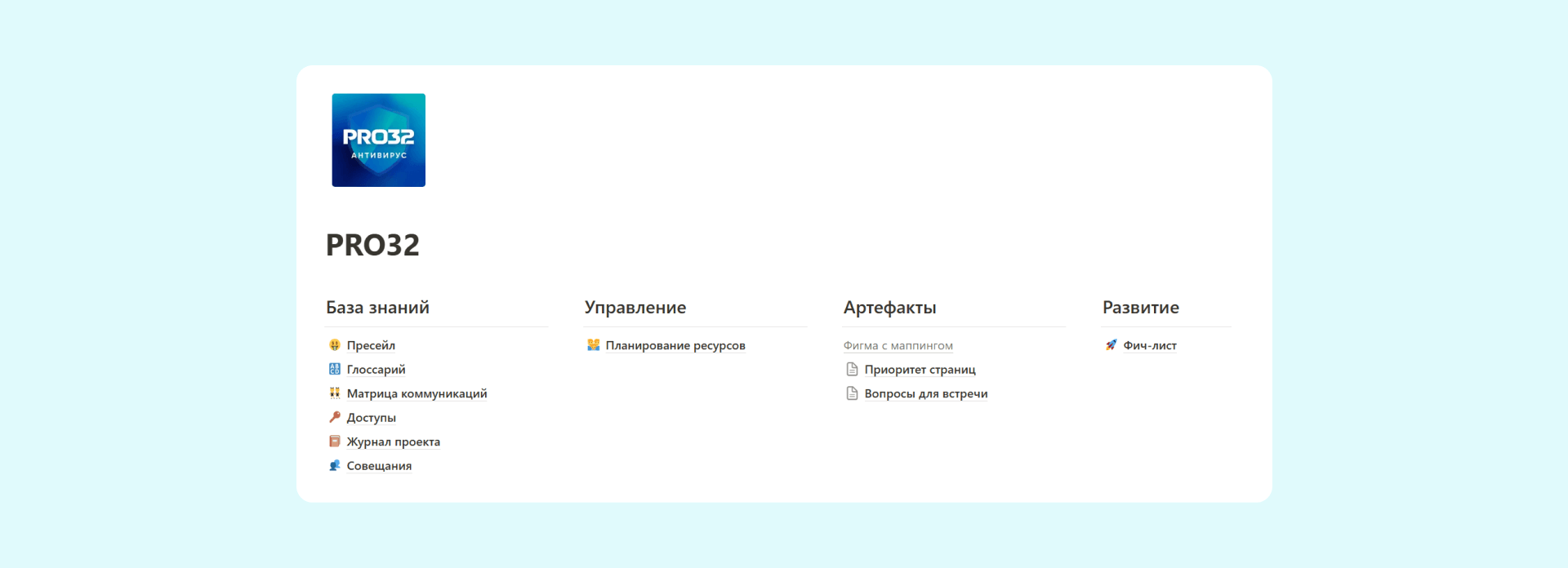 Сделали паспорт проекта, где велась вся документация, артефакты работ, протоколы встреч и ключевые договорённости.
