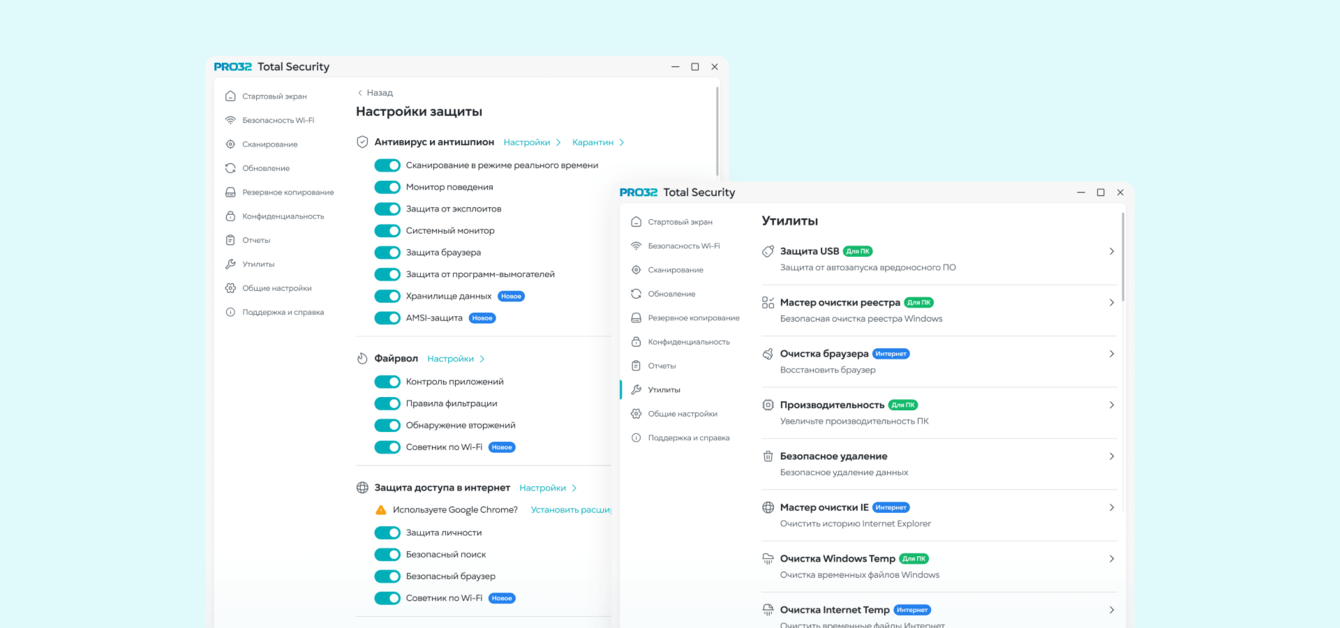 PRO32 — поставщик IT-решений нового поколения. Компания существует больше 17 лет, а её решениям доверяют 15+ миллионов пользователей из России и стран СНГ. В продуктовый портфель входят антивирус для дома и офиса, администратор удалённых рабочих мест, приложение для приватности на смартфонах.