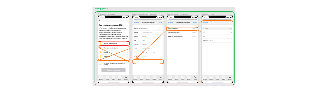 2. Нужно продумать Анкету таким образом, чтобы пользователь охотнее её заполнял — не перенасытить вопросами, никто не любит вводить большое количество данных и выполнять большое количество действий. Если разделить Анкету на личную информацию и другие данные (о семье, увлечениях и соц. сведения), то вероятность, что пользователь зайдет на все экраны – небольшая. Даже если эта информация будет обязательная к заполнению, это создаст неудобства для клиента и уменьшит вероятность регистрации бонусной карты.