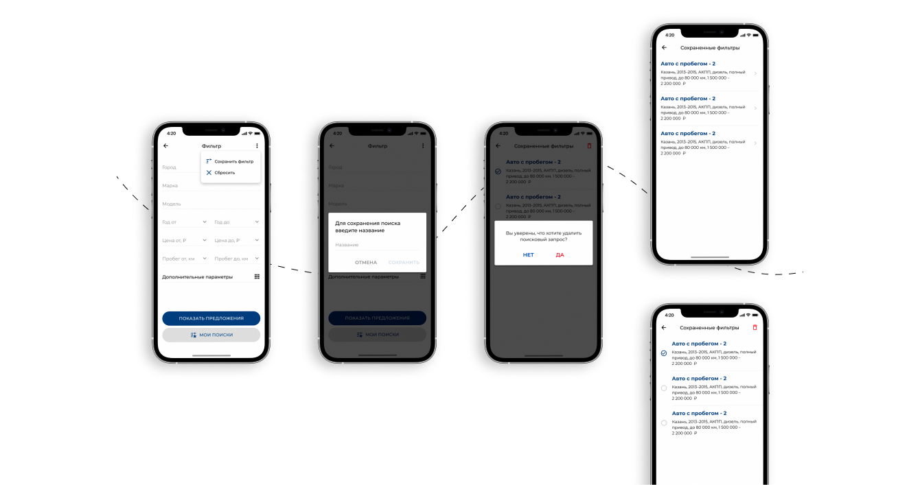 Для удобства пользователя при выборе автомобиля предусмотрели фильтр с большим количеством критериев. Например: марка, модель, ценовой диапазон, год выпуска, пробег и т.д.