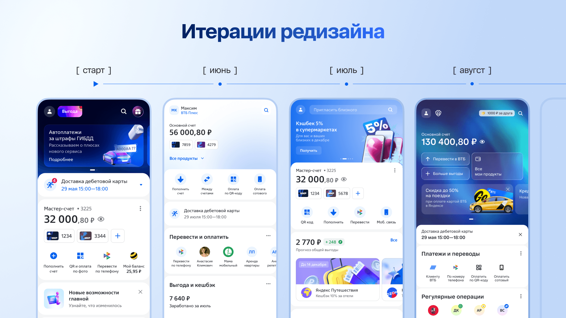 С 15 марта 2026 года редизайн начал поэтапно тиражироваться на всю клиентскую базу ВТБ — проект перешёл в фазу полноценного масштабирования.