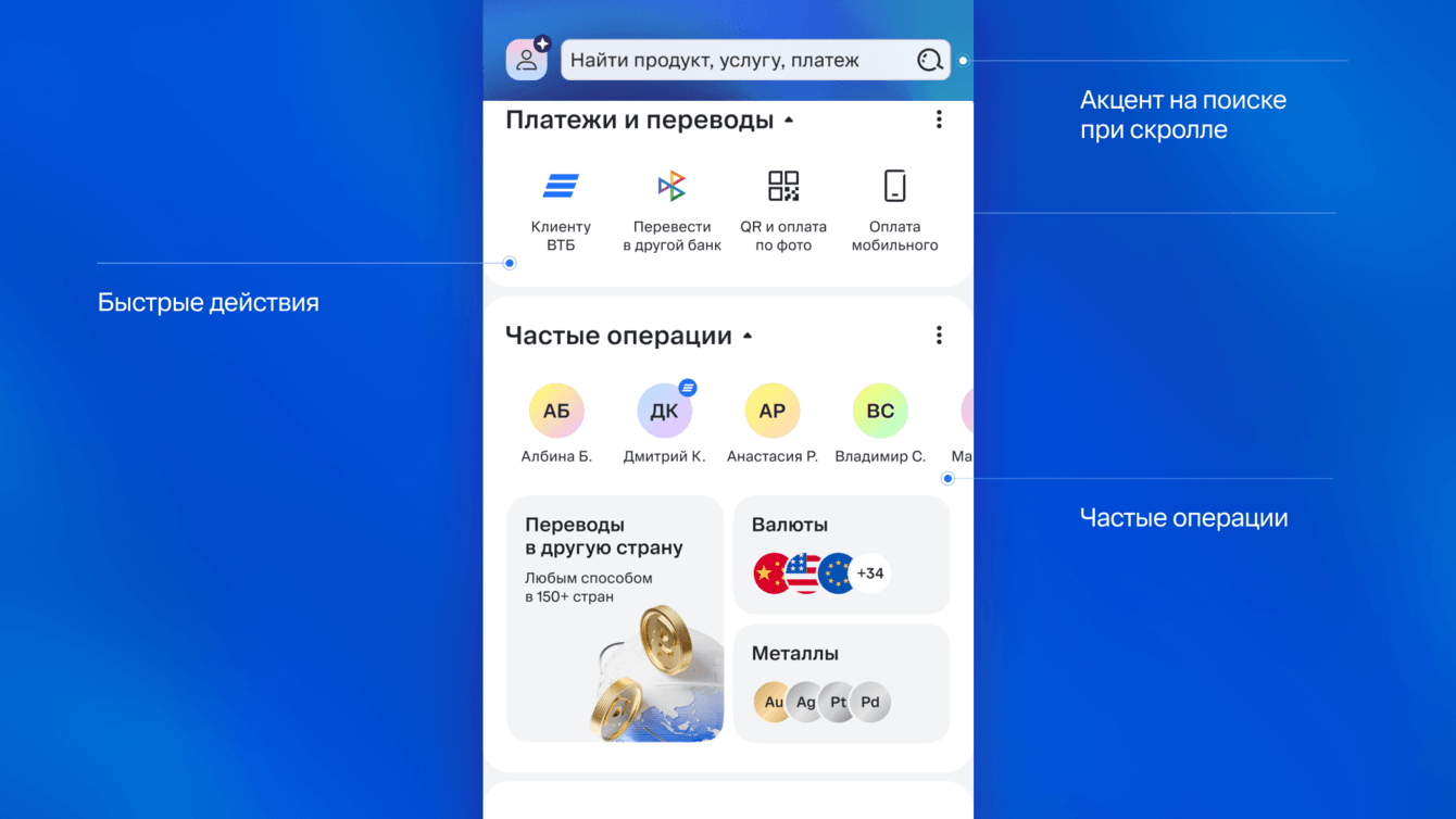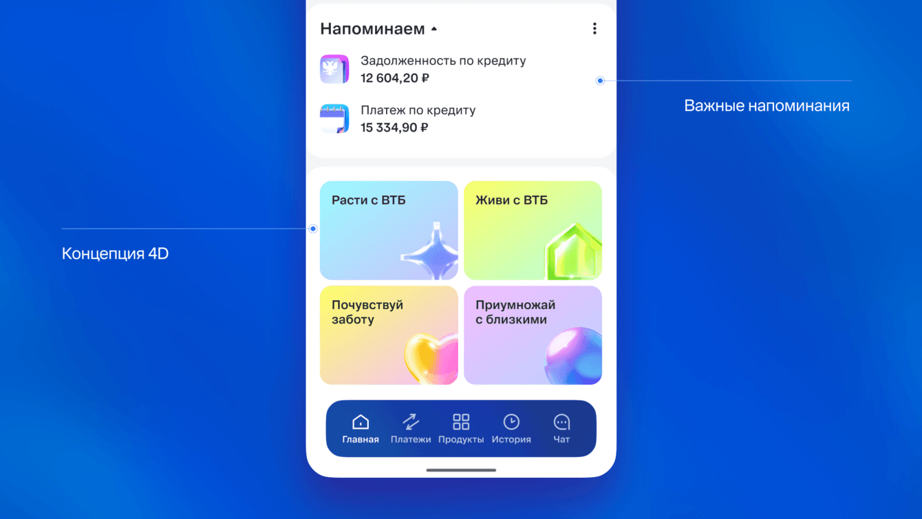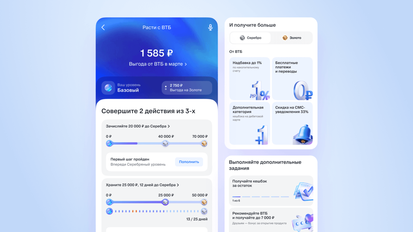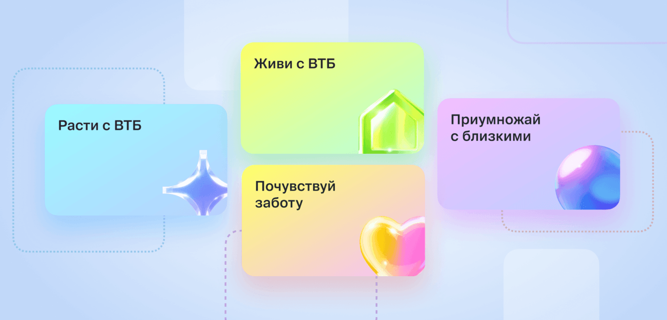Отразить в интерфейсе и механиках новое позиционирование розничного бизнеса ВТБ, обеспечив визуальную и смысловую связь с обновленным имиджем банка.