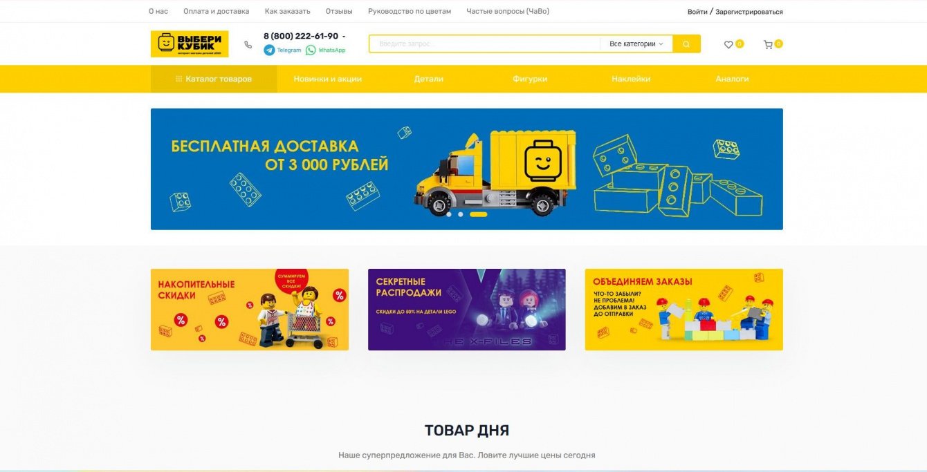 Клиент: Интернет-магазин деталей ЛЕГО (LEGO). Сайт был разработан самостоятельно владельцами интернет-магазина на базе платформы Shop-Script, без привлечения дизайнера и специалистов по веб-разработке.