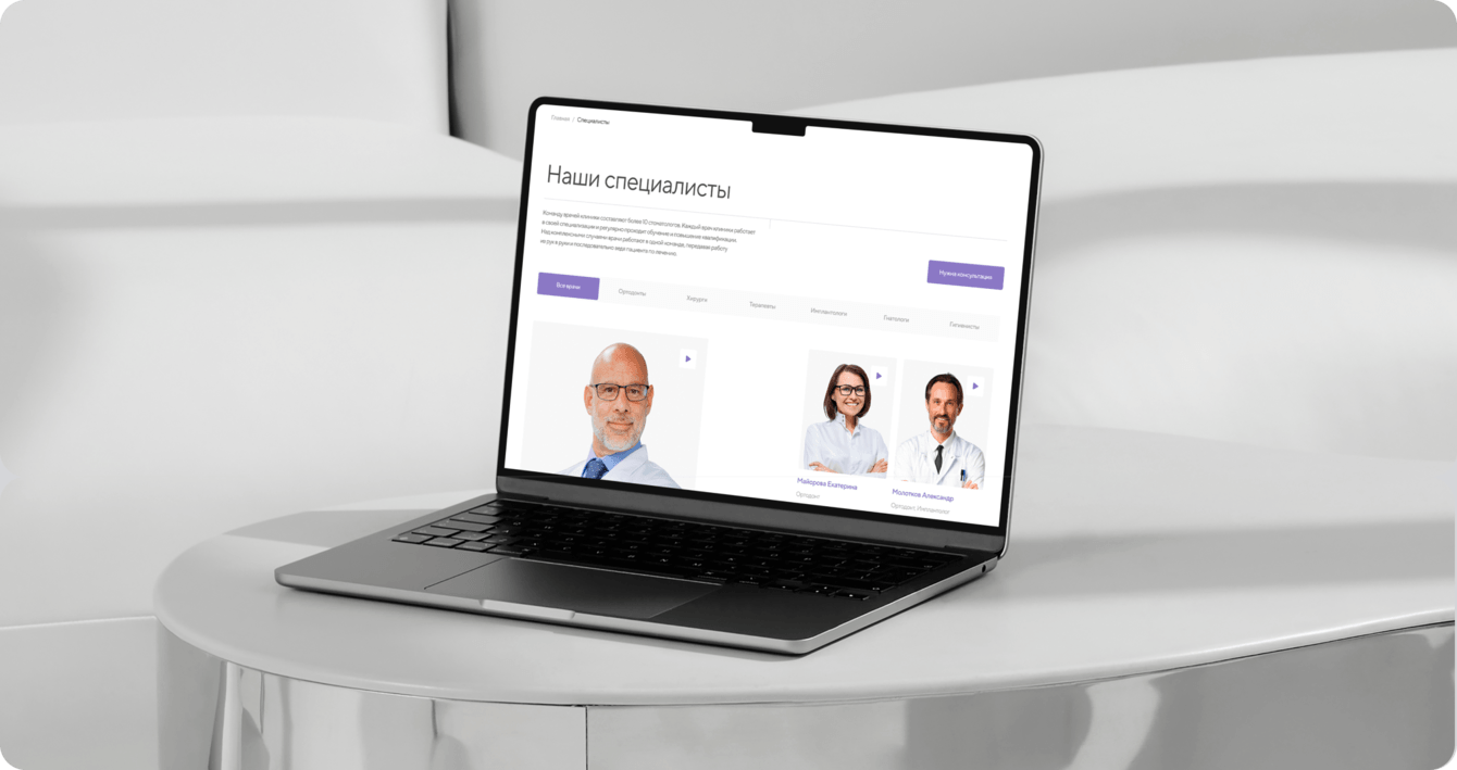 Подготовили и согласовали дизайн-концепцию: современную, технологичную и визуально чистую, с акцентом на экспертность клиники.