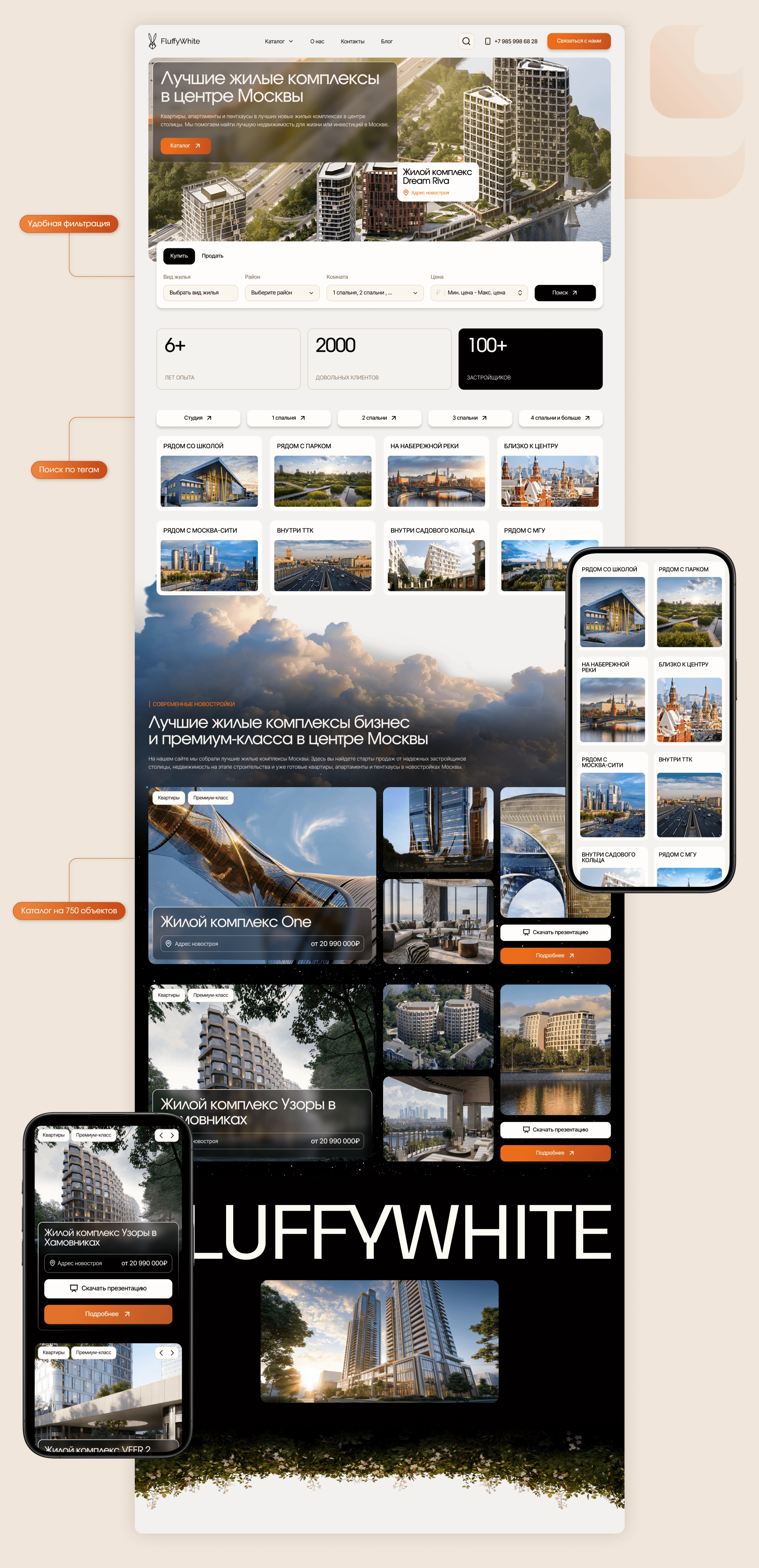 В 2023-2024 году команда DS-ART разработала для агентства элитной недвижимости Fluffy White сайт-каталог, который стал полноценной digital-площадкой для презентации объектов и работы с входящими обращениями, так как сайт занимал топовые позиции и имел более десятка тысяч запросов в поисковых системах.