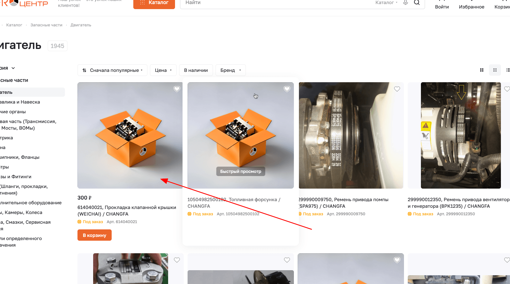 Так выглядит раздел запчастей со сгенерированными картинками: