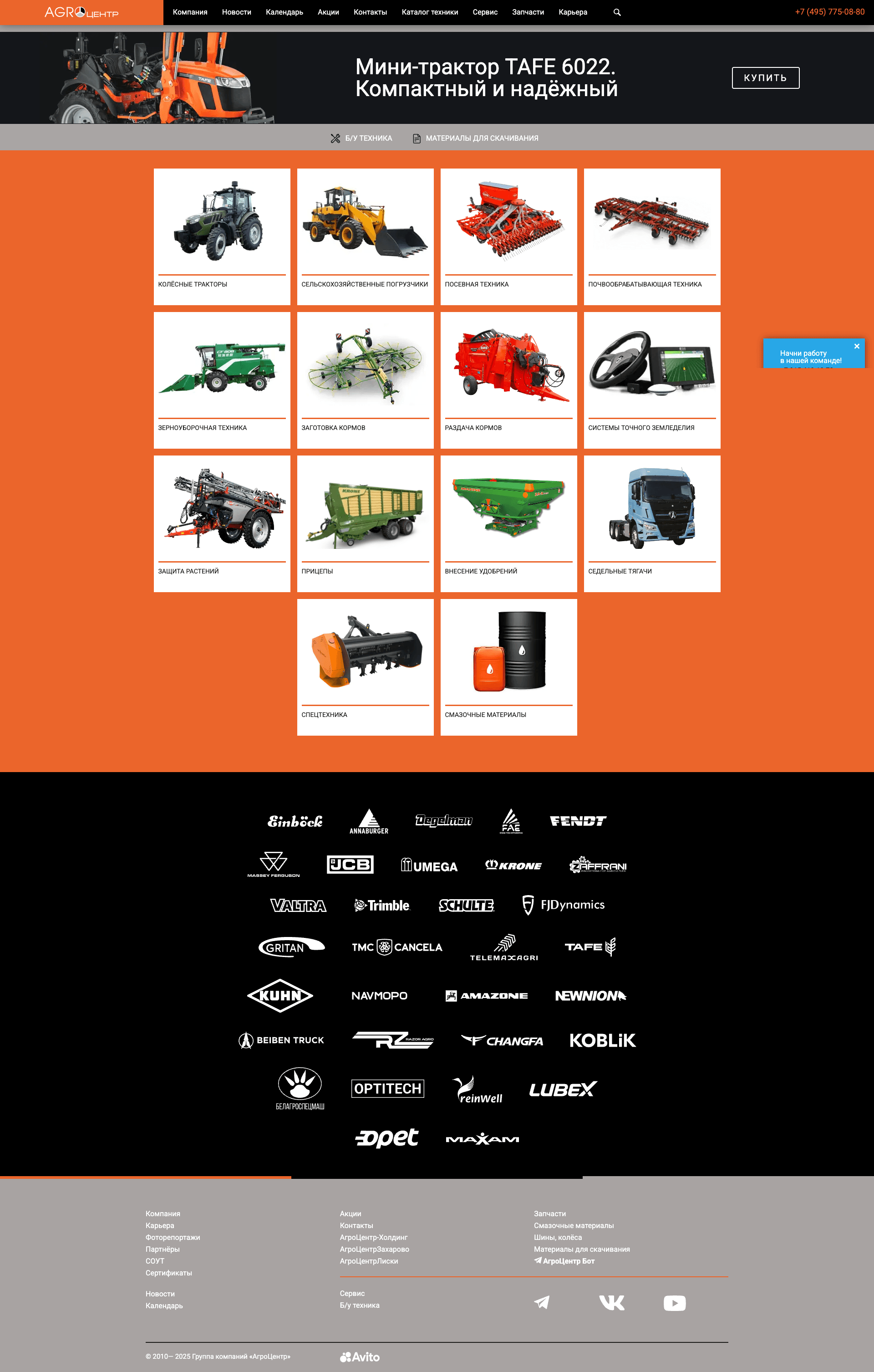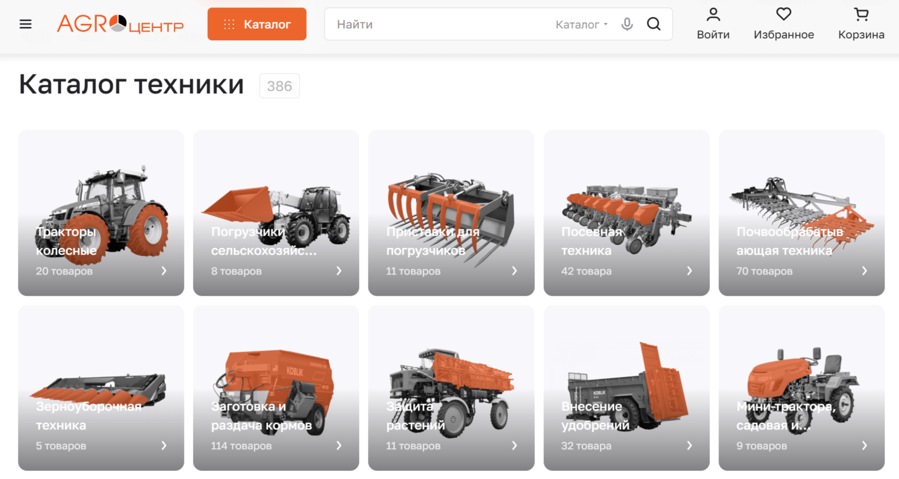 Вынесли бренды сельскохозяйственной техники в отдельный раздел, чтобы можно было смотреть вне общего каталога. На старом сайте разделы «техника» и «бренды» были объединены.