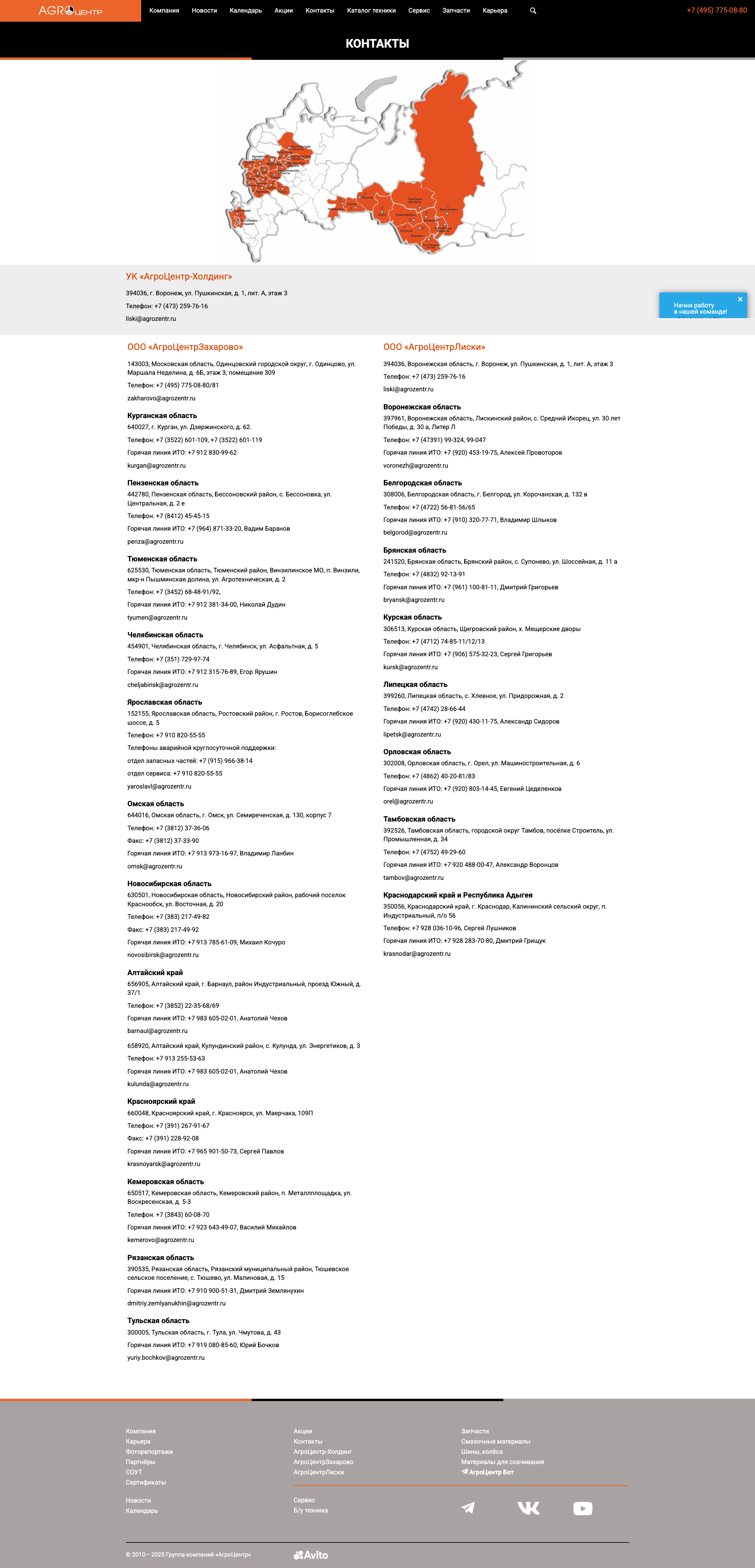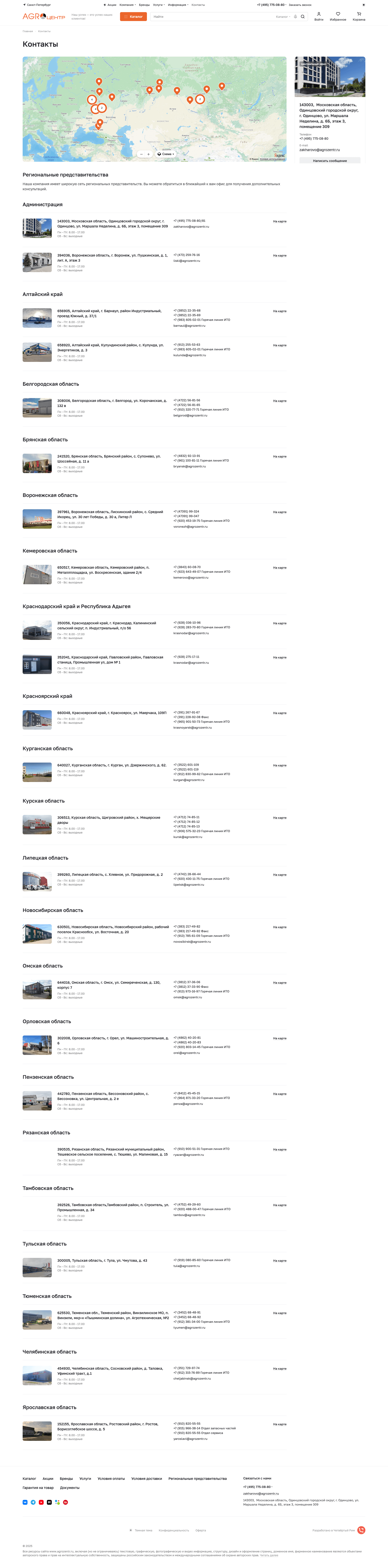 Для удобства пользователей упорядочили по алфавиту региональные представительства и проиллюстрировали раздел «Контакты».