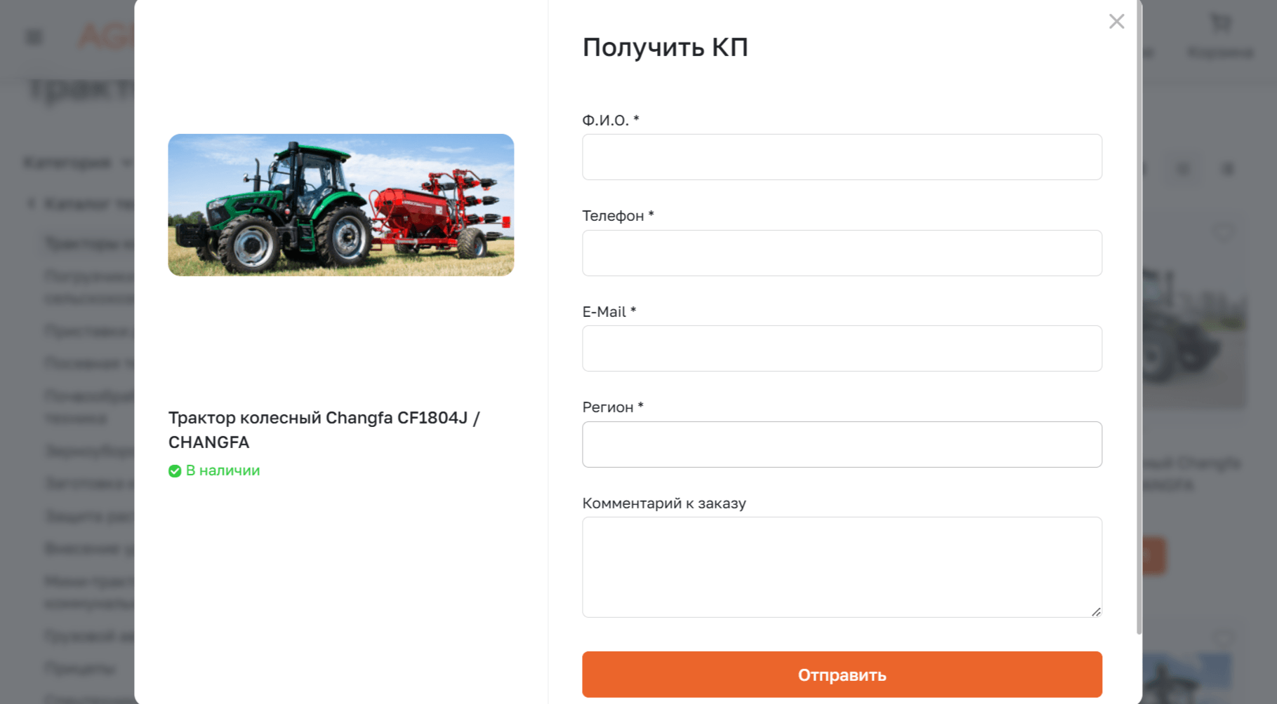 Сделали каталог удобнее благодаря разделению товаров и услуг. Теперь пользователи могут быстро выбрать нужный товар: запчасти удобно добавлять непосредственно в корзину одним кликом, а на крупные позиции, вроде техники или GPS-оборудования, достаточно отправить предварительную заявку. Таким образом, каждый посетитель получает оптимальное решение именно для своей ситуации.