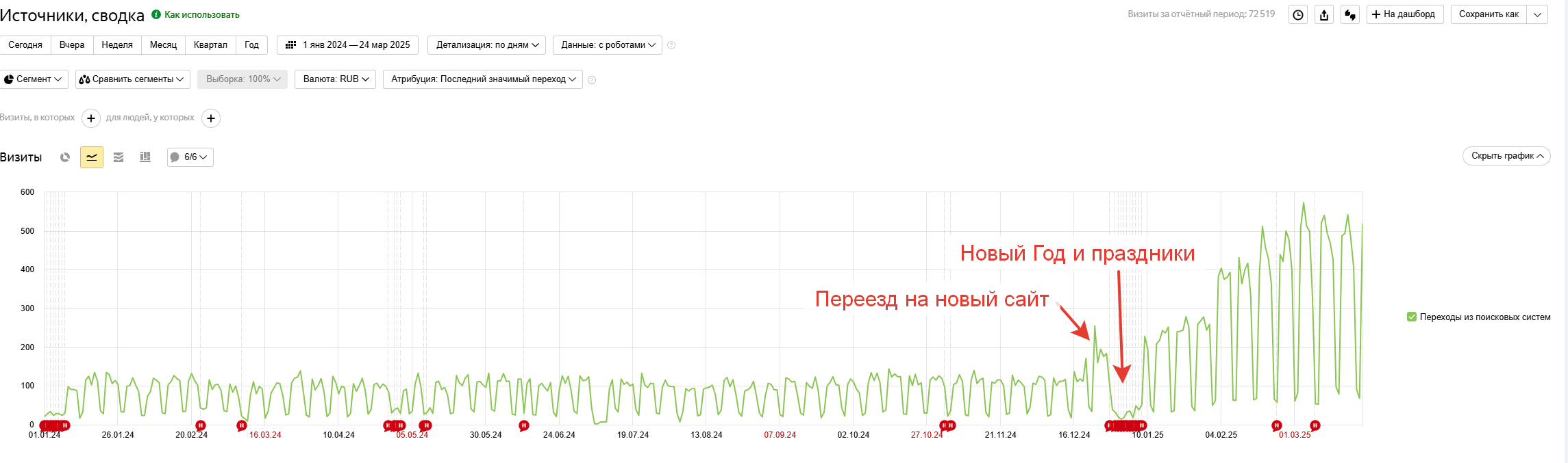 Рост трафика. Падение связано с низким сезоном — новогодними праздниками.