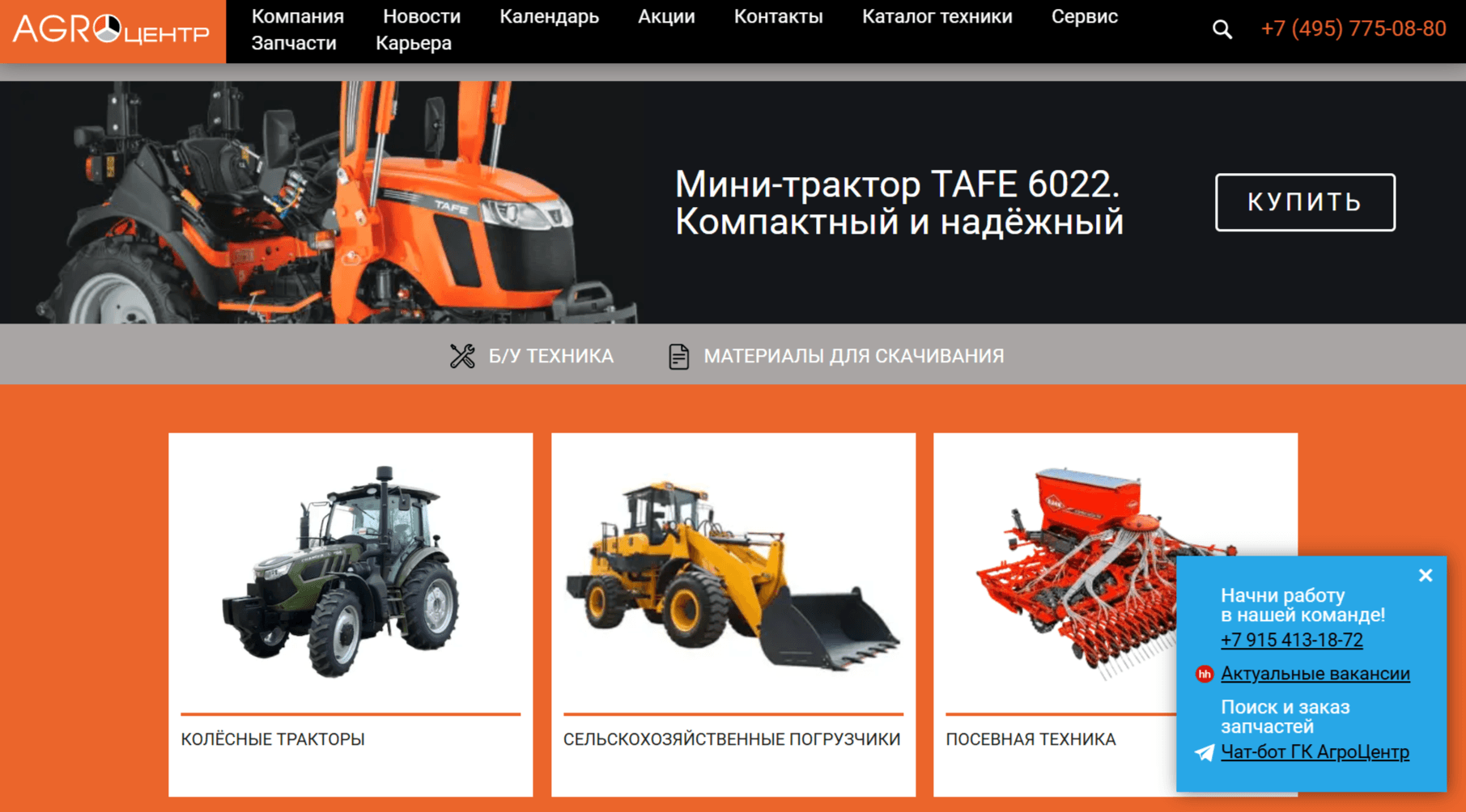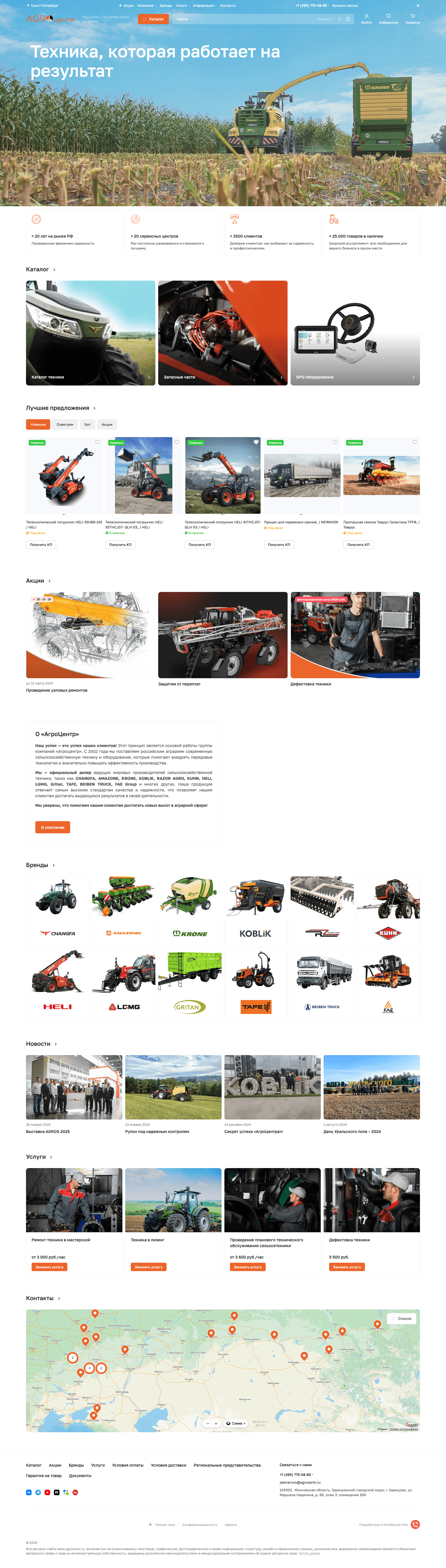 АгроЦентр — поставщик сельскохозяйственной техники, запчастей мировых брендов и сервисного обслуживания с 20-летним опытом. Проблема — старый неудобный сайт без онлайн-заказов.