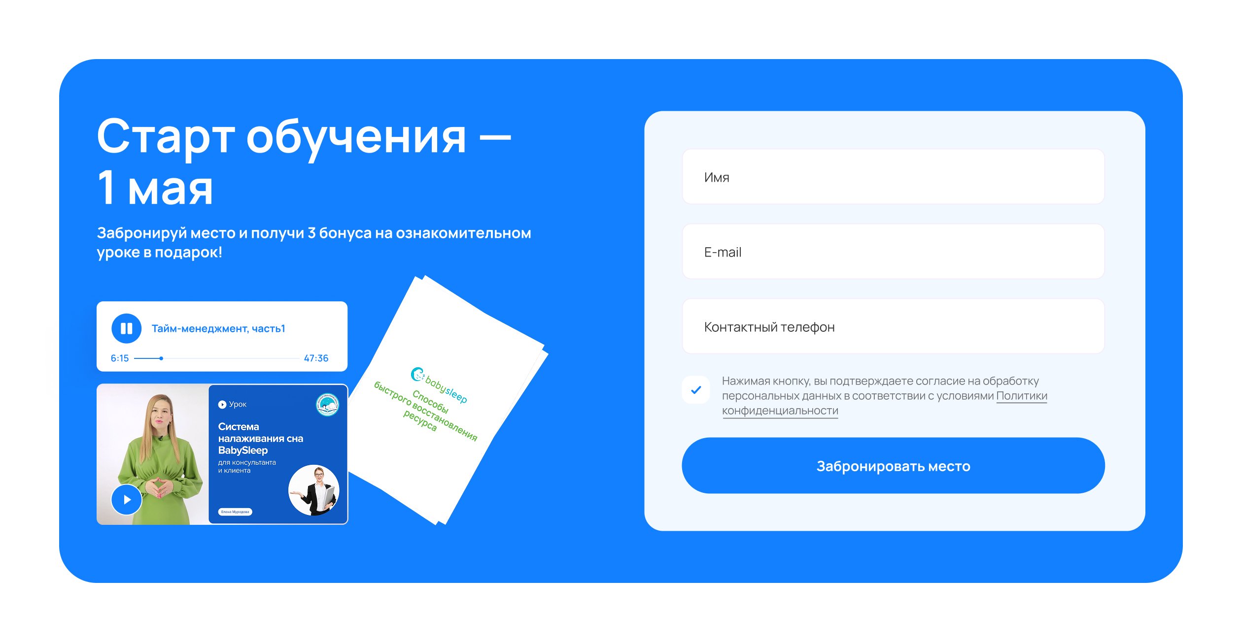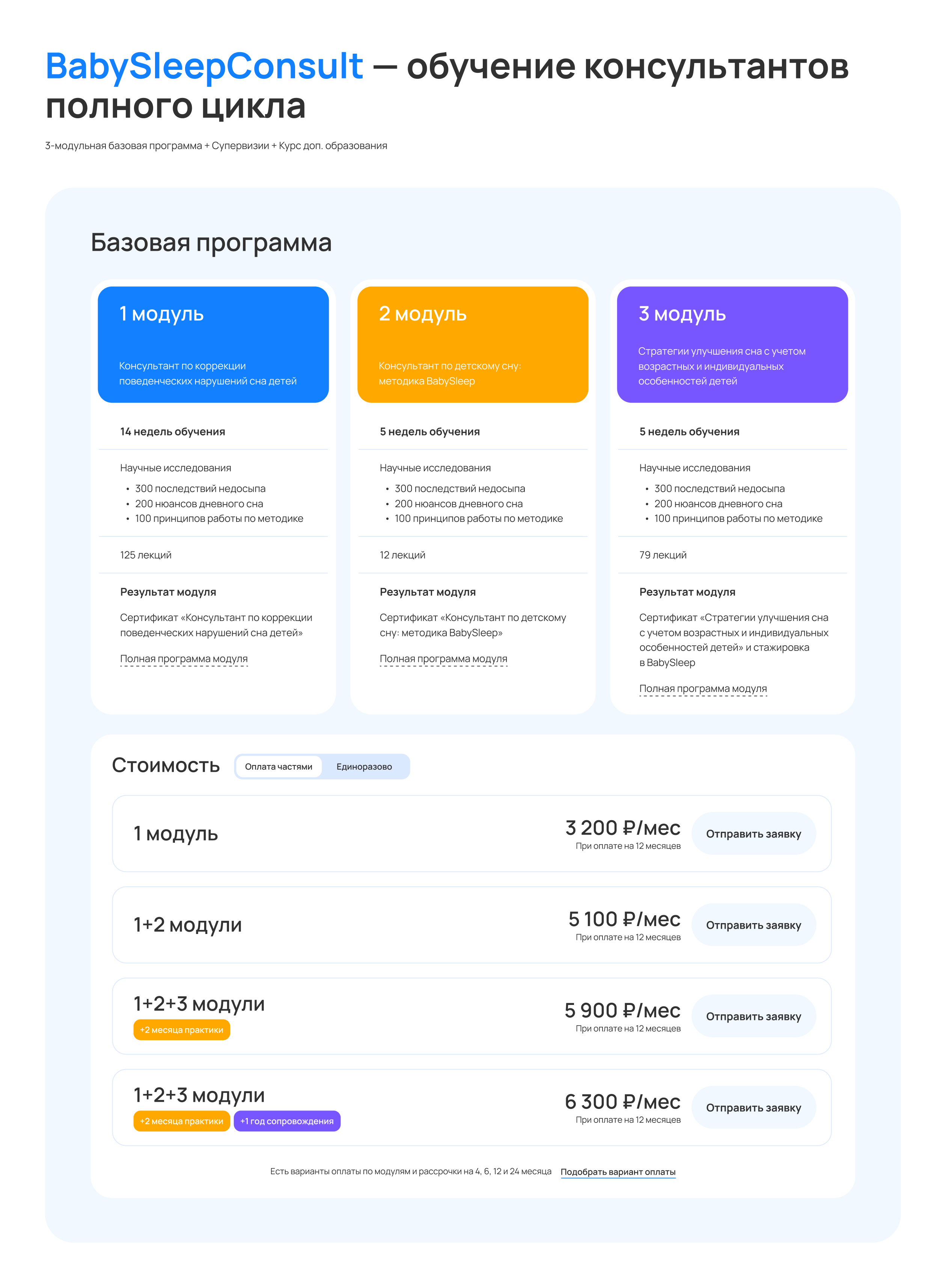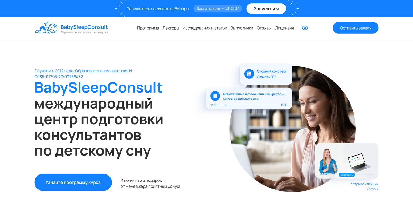 - Снятие возражений: Выстроить «архитектуру доверия» на сайте, так как ниша детского сна связана со здоровьем и требует высокого уровня экспертности преподавателей.
