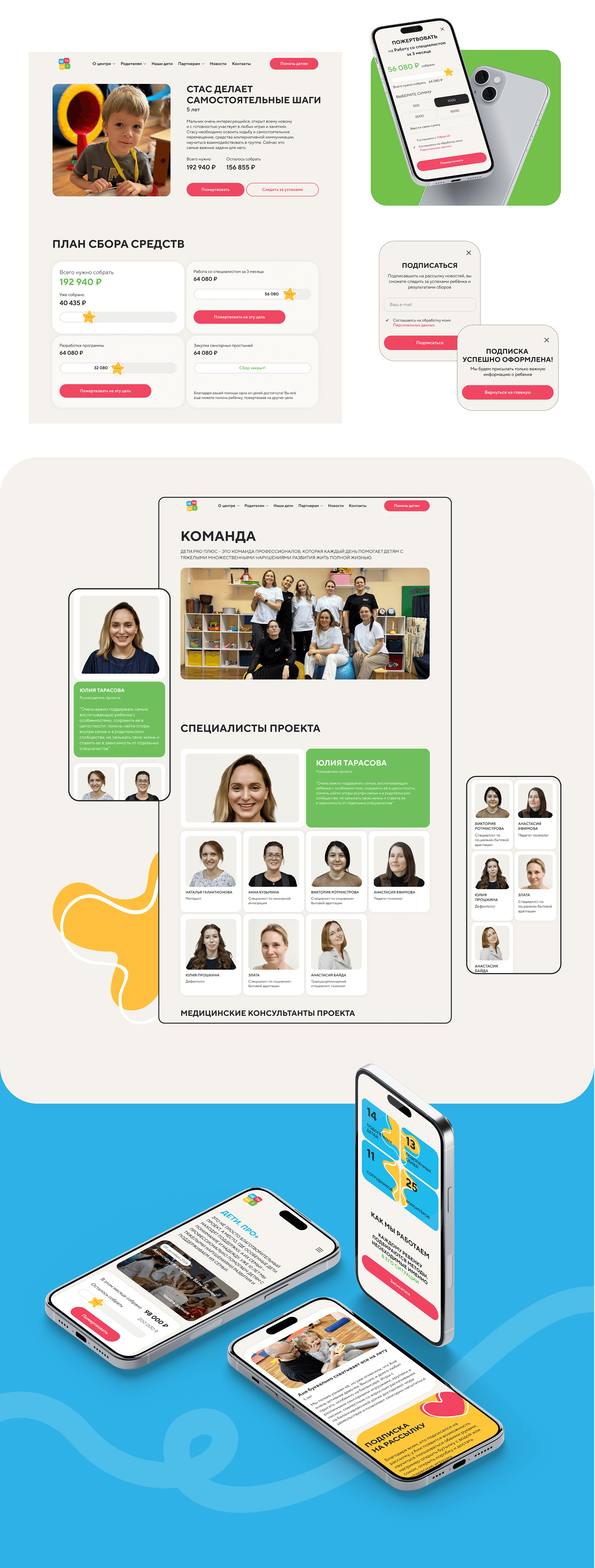 На странице детей реализована механика сбора, когда можно вносить деньги на определенную цель. А еще можно подписаться на ребенка, которого поддерживаешь и следить за новостями, что позволяет удерживать внимание благотворителей и мотивировать их продолжать поддерживать ребенка