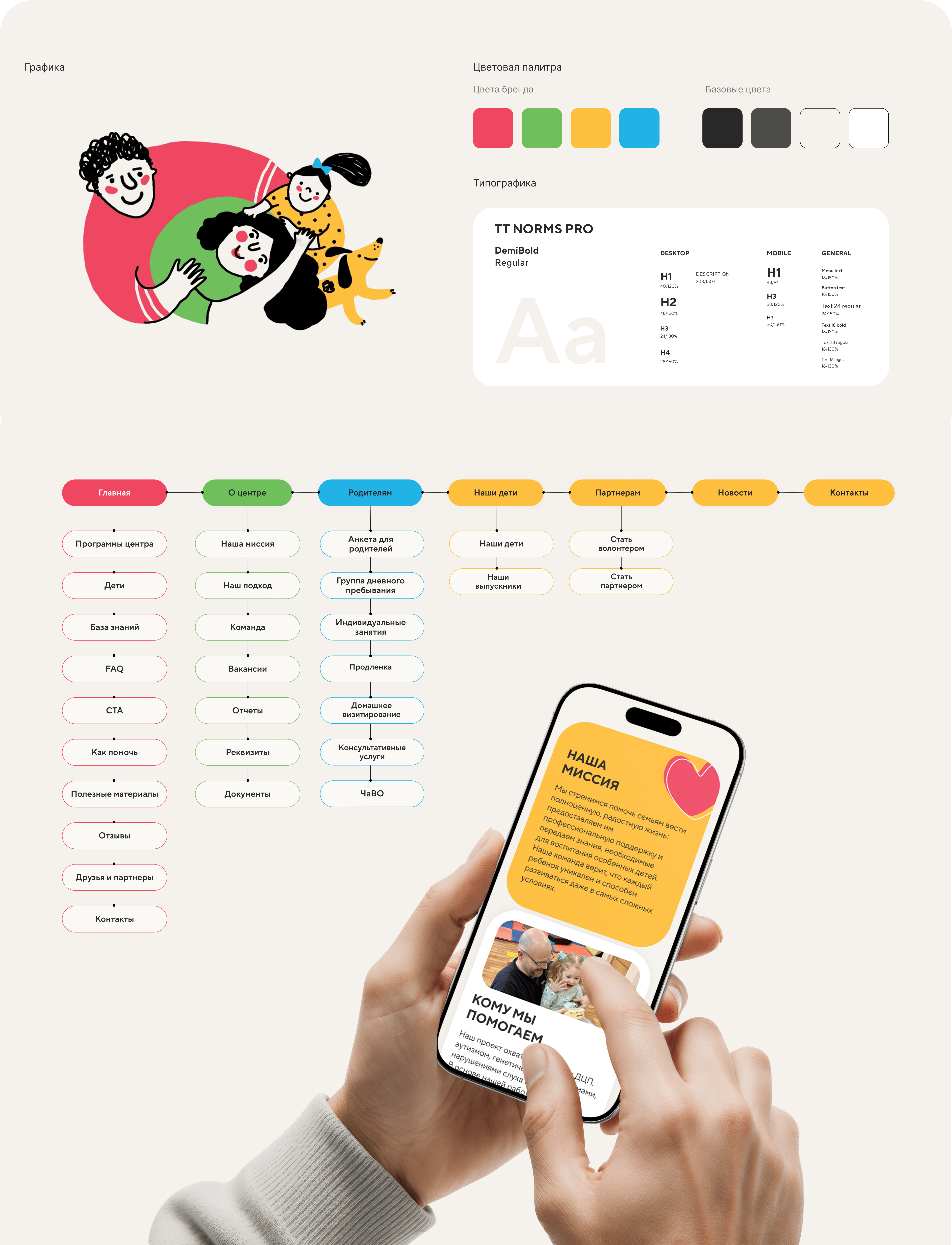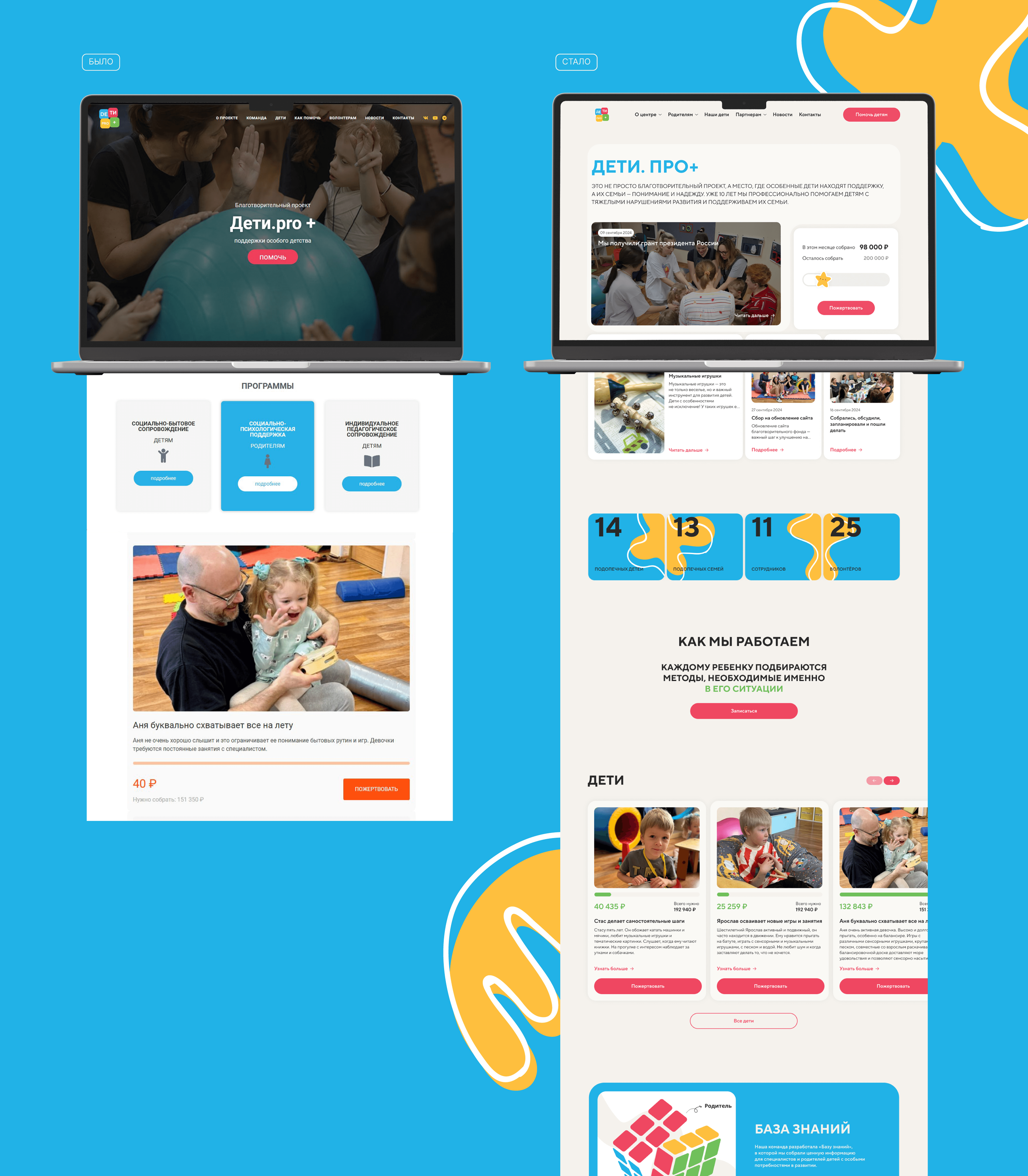 1. Сделать редизайн сайта и доработать фирменный стиль для благотворительного проекта Дети Про+ по работе с особенными детьми.