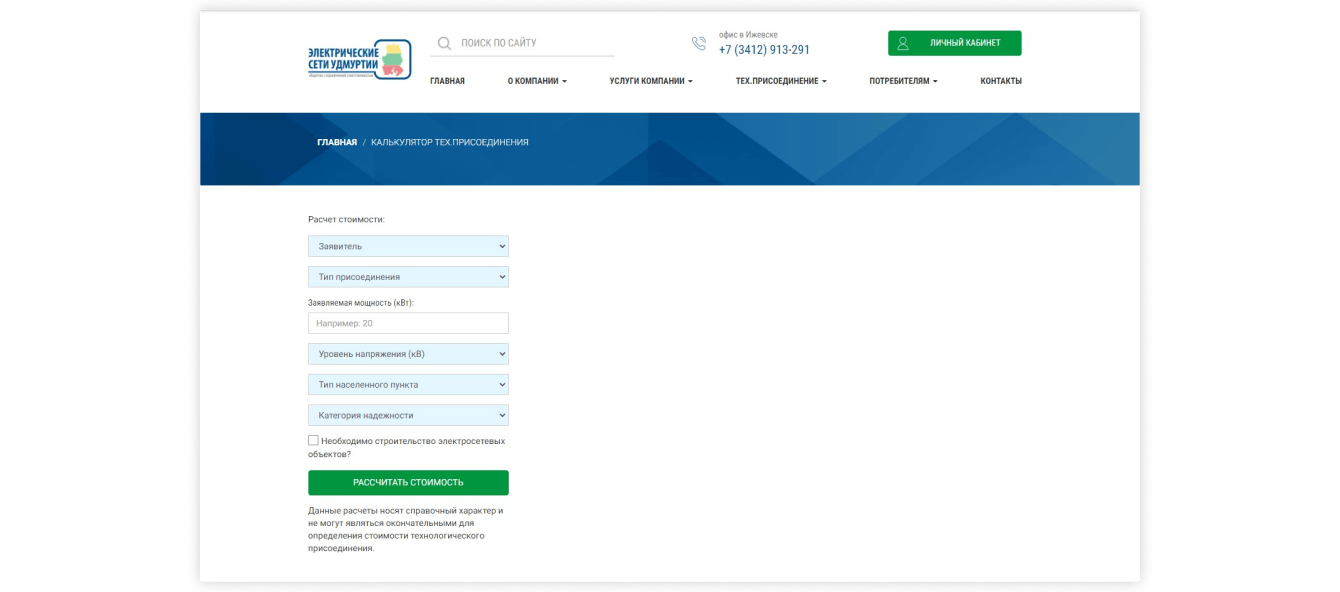 Клиент может прямо на сайте рассчитать стоимость подключения.