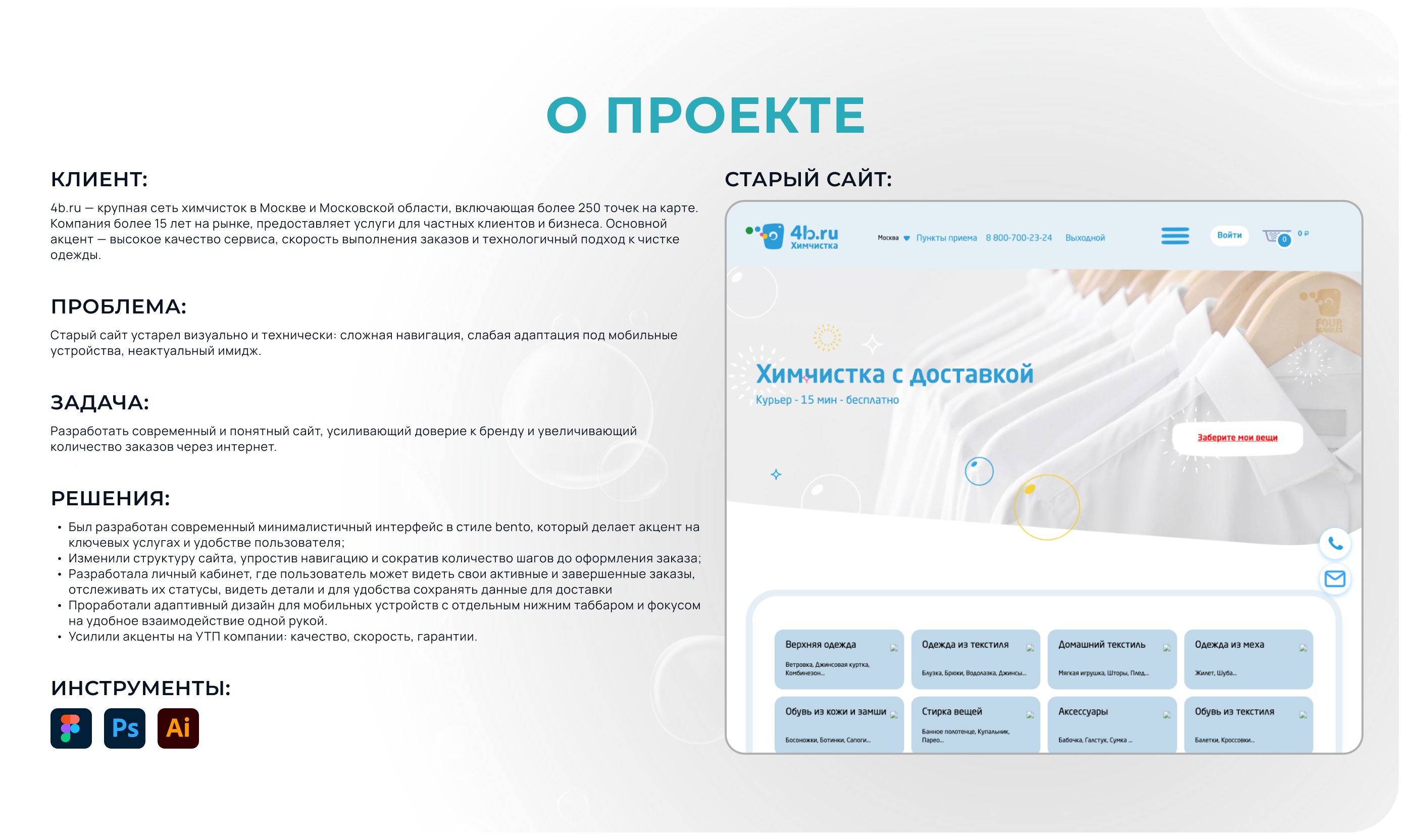 Думаю 4b теперь лидеры не только непосредственно в своей нише, но и обладатели самого красивого и прогрессивного сайта по химчисткам в РФ)