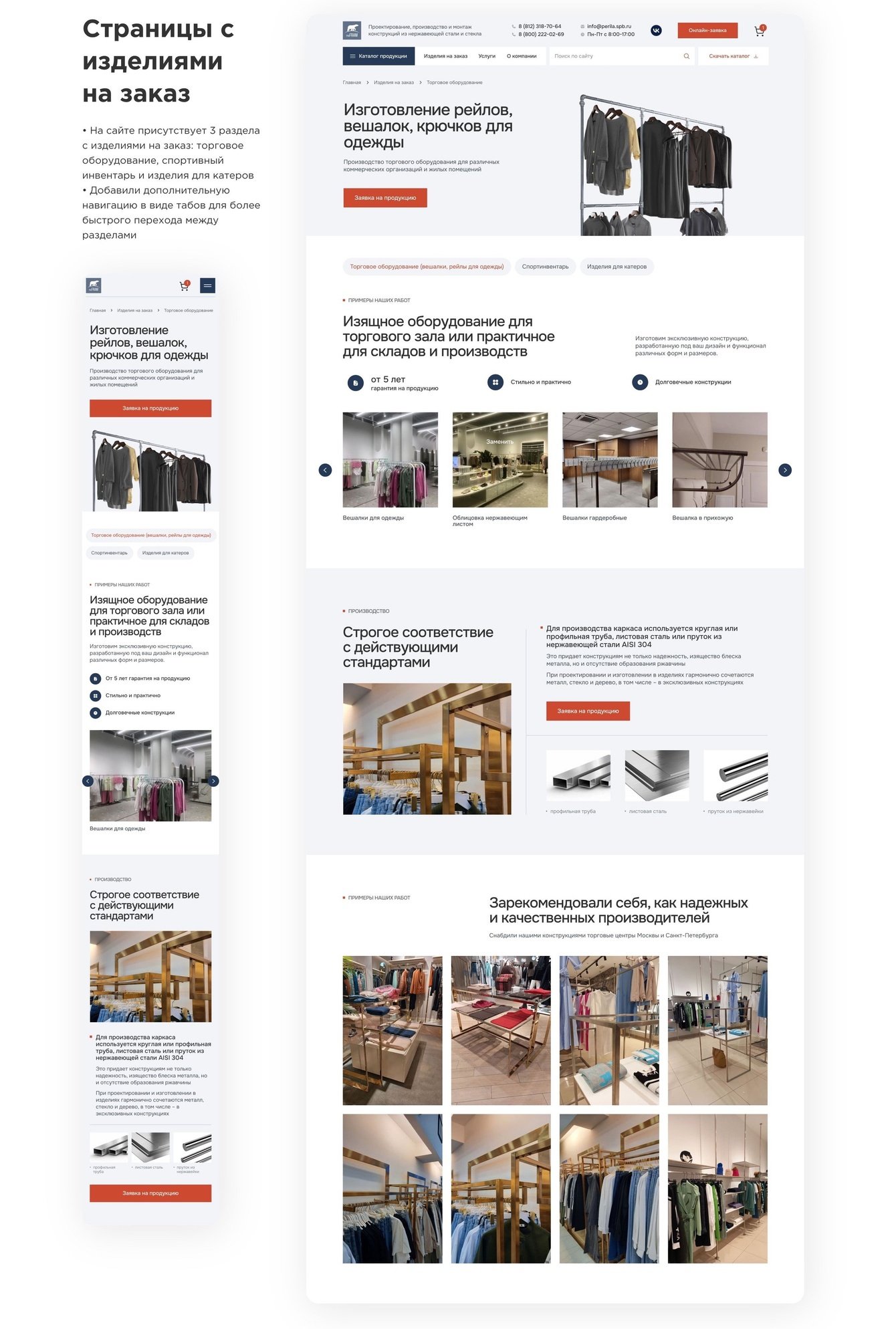 • Внедрели элементы интернет-магазина, разработали страницы для каждого изделия с полным описанием товара и возможностью выбора его характеристик