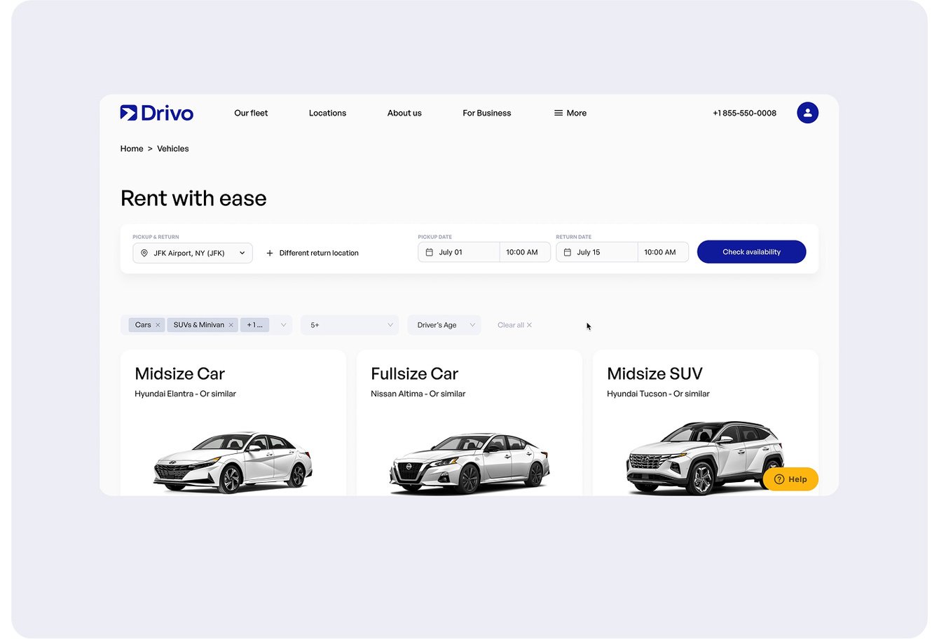 Drivo — сервис аренды автомобилей с локациями в США. У компании был стабильный поток клиентов, качественный автопарк, высокий уровень обслуживания. Но одно слабое звено сдерживало рост: устаревший сайт.
