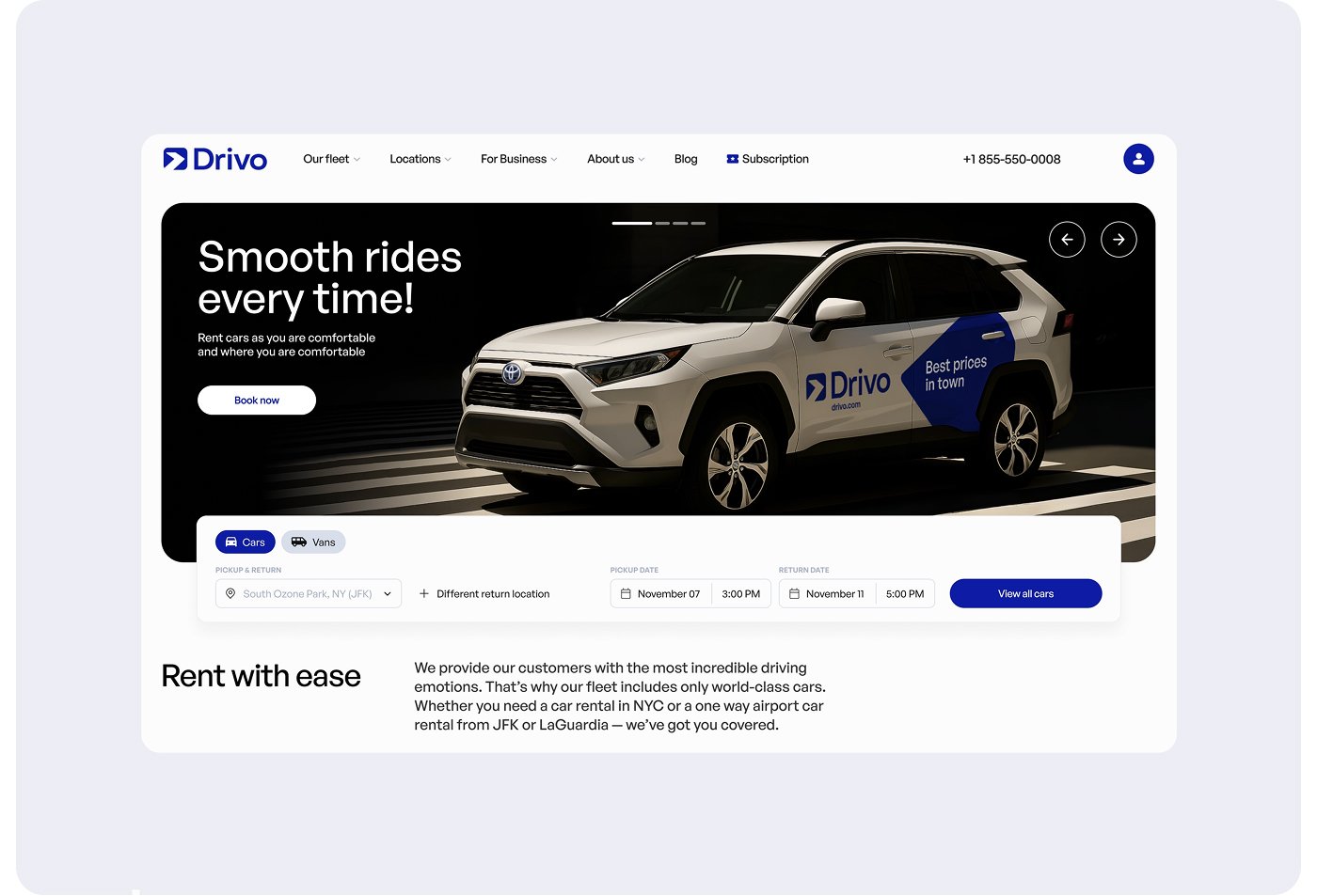 Drivo — сервис аренды автомобилей с локациями в США. У компании был стабильный поток клиентов, качественный автопарк, высокий уровень обслуживания. Но одно слабое звено сдерживало рост: устаревший сайт.