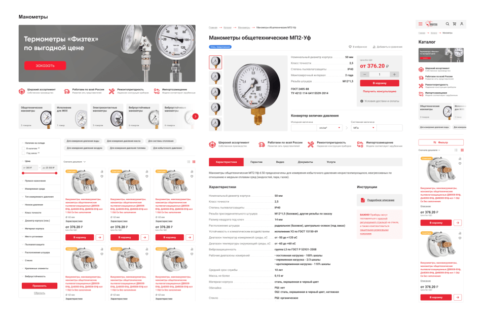 - Проработка каталога манометров с перечислением видов продукции и непосредственно самими товарами.