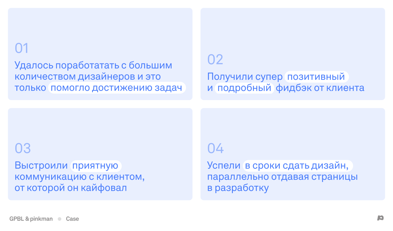 Перед началом презентовали заказчику план проекта и обсудили процесс взаимодействия — сроки были сжатые, поэтому нужна была максимальная синхронизация всех команд: маркетинга, разработки и дизайна.